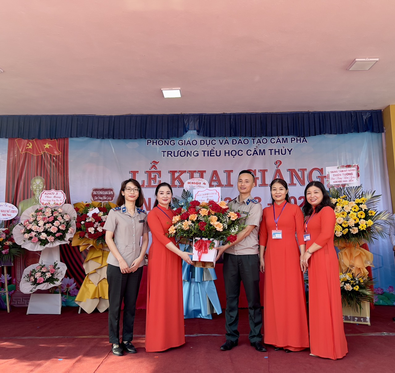Hôm nay ngày 05/9/2023, hào hứng đón chào năm học mới, Trường tiểu học Cẩm Thủy long trọng tổ chức lễ khai giảng năm học mới “Năm học 2023 – 2024”. Hòa trong không khí đó, thay mặt lãnh đạo, cán bộ, công chức, người lao động Chi cục Thi hành án dân sự thành phố Cẩm Phả, đồng chí Nguyễn Hồng Thúy – bí thư Đoàn thanh niên Chi cục Thi hành án dân sự thành phố Cẩm Phả đã gửi lời chúc đến các thầy giáo, cô giáo và các em học sinh Trường tiểu học Cẩm Thủy mạnh khỏe, phấn đấu hoàn thành tốt nhiệm vụ, đạt nhiều thành tích trong năm học mới và có lẵng hoa tươi thắm chúc mừng nhà trường.