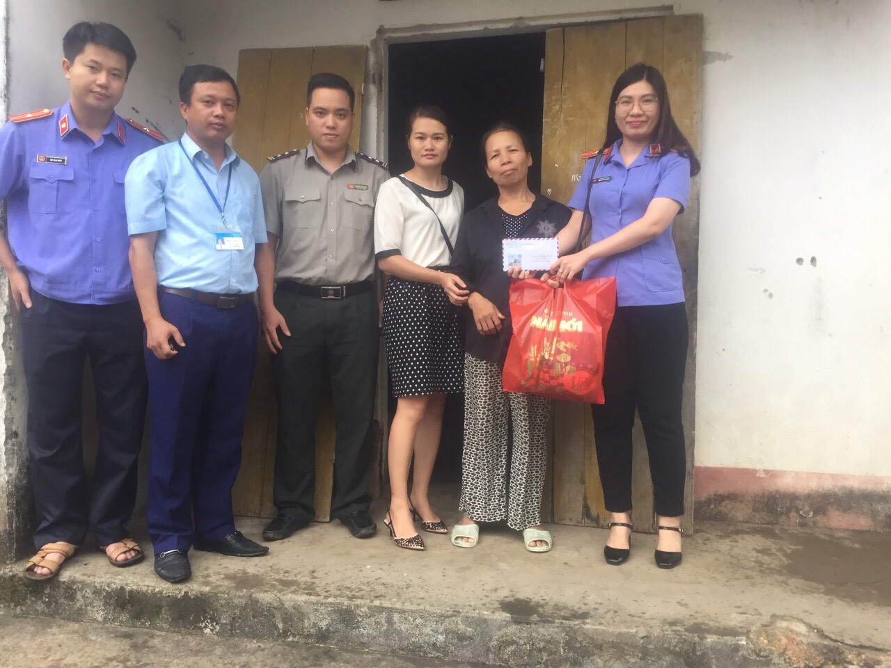(Chi đoàn cùng đại diện chính quyền địa phương tới thăm và tặng quà gia đình cụ)