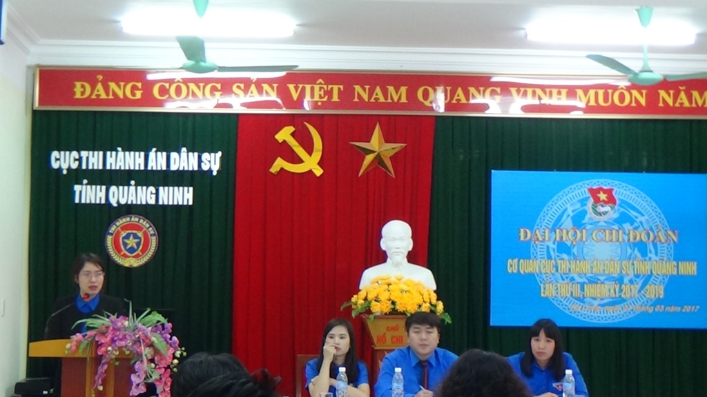 Thực hiện kế hoạch số 36KH/ĐTN ngày 15/8/2016 của Ban chấp hành Đoàn khối các cơ quan Tỉnh về việc tổ chức nhiệm kỳ Đại hội Đoàn tại các cơ sở Đoàn trực thuộc. Được sự đồng ý và chỉ đạo của Đảng ủy Cục Thi hành án dân sự tỉnh Quảng Ninh, Ban thường vụ đoàn khối các cơ quan tỉnh. Ngày 27/03/2017, Chi đoàn Thanh niên Cộng sản HCM Cục Thi hành án dân sự tỉnh đã tiến hành đại hội Chi Đoàn lần thứ III nhiệm kỳ 2017 - 2019, nhằm tổng kết công tác đoàn và phong trào thanh thiếu nhi nhiệm kỳ 2014-2017, đề ra phương hướng nhiệm vụ trọng tâm nhiệm kỳ 2017-2019 và bầu Ban chấp hành Chi đoàn Cục Thi hành án dân sự tỉnh khoá mới.