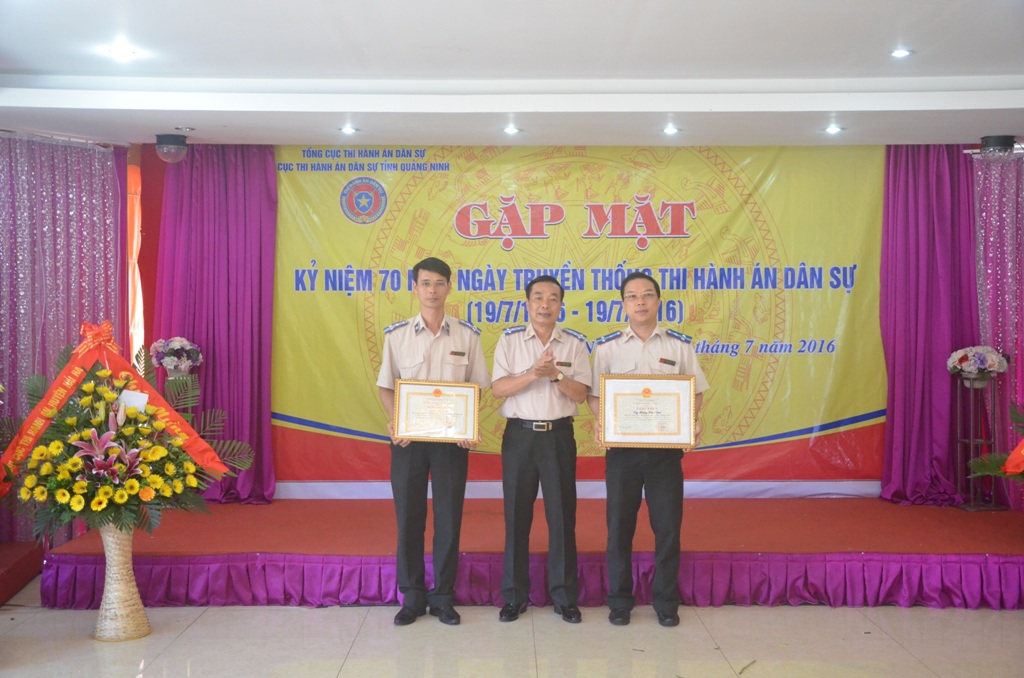 Sáng ngày 16/7/2016, tại TP Hạ Long, Cục Thi hành án dân sự tỉnh Quảng Ninh đã tổ chức buổi Gặp mặt cán bộ hưu trí và cán bộ, công chức ngành Thi hành án dân sự tỉnh Quảng Ninh nhân dịp kỷ niệm 70 năm ngày truyền thống ngành Thi hành án dân sự (19/7/1946 – 19/7/2016). Đến dự và chủ trì Hội nghị có đồng chí Nguyễn Minh Văn – Cục trưởng Cục Thi hành án dân sự tỉnh Quảng Ninh. Ngoài ra, về dự Hội nghị còn có các đồng chí nguyên Giám đốc Sở Tư pháp tỉnh, nguyên Cục trưởng, Phó Cục trưởng; các đồng chí Phó Cục trưởng; Trưởng phòng, Phó phòng chuyên môn; Chi cục trưởng, Phó Chi cục trưởng các Chi cục Thi hành án dân sự huyện, thị xã, thành phố thuộc tỉnh và toàn thể cán bộ hưu trí, Chấp hành viên, kế toán trưởng trong toàn tỉnh.