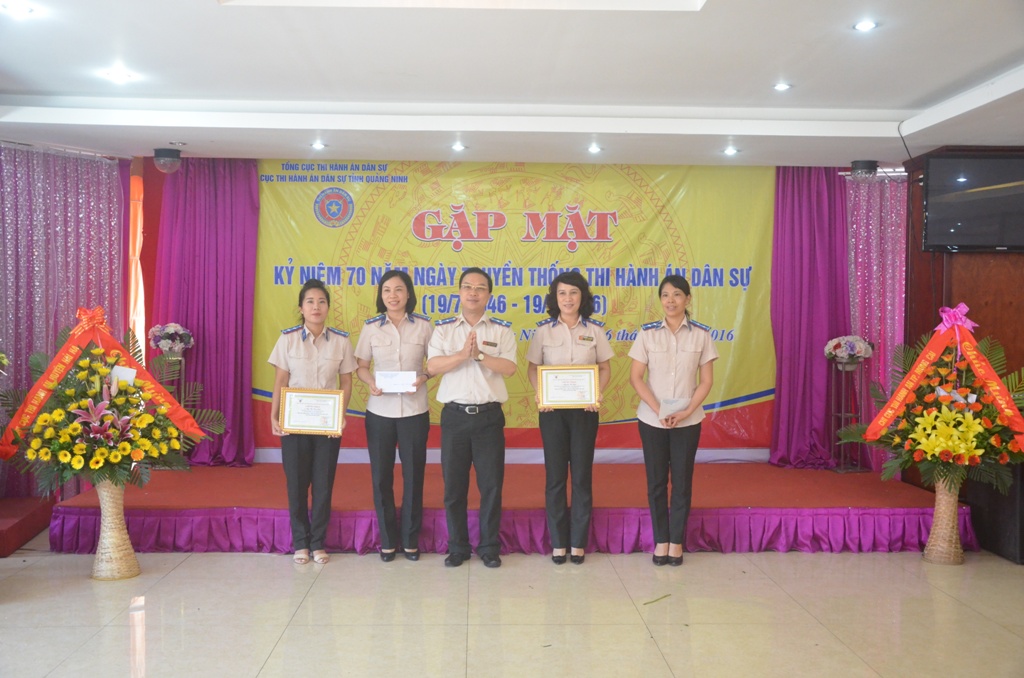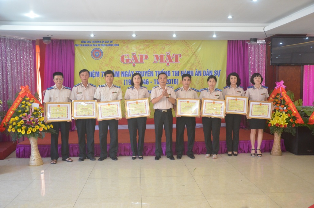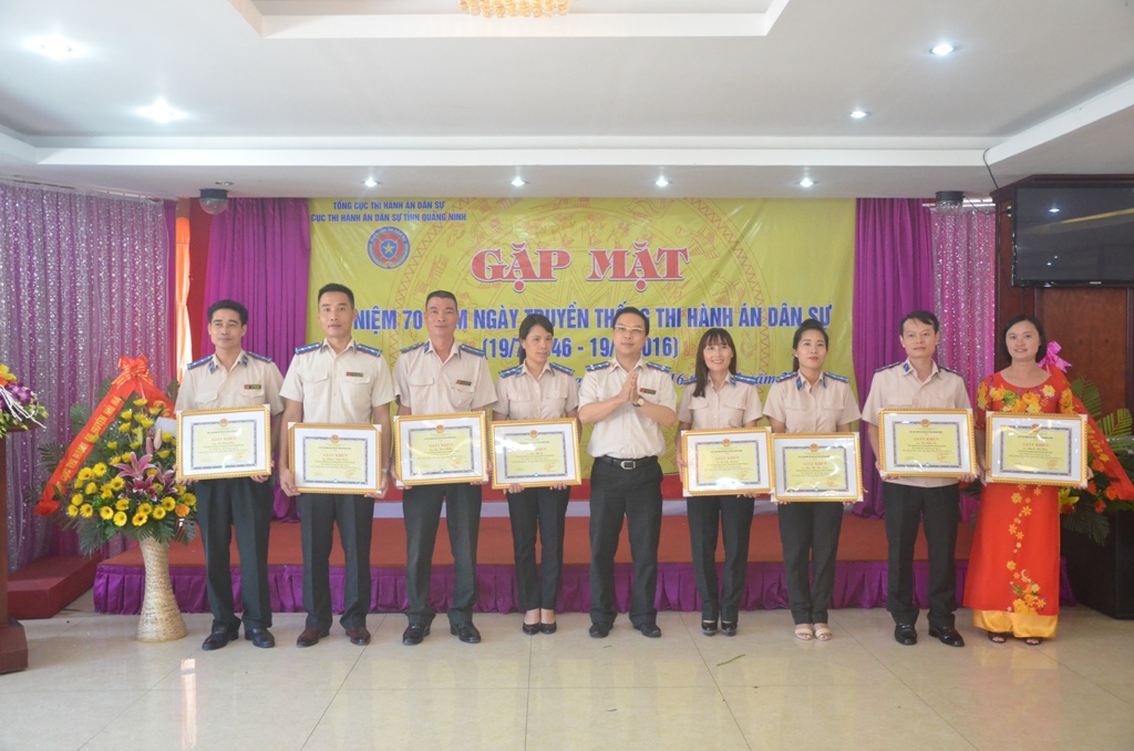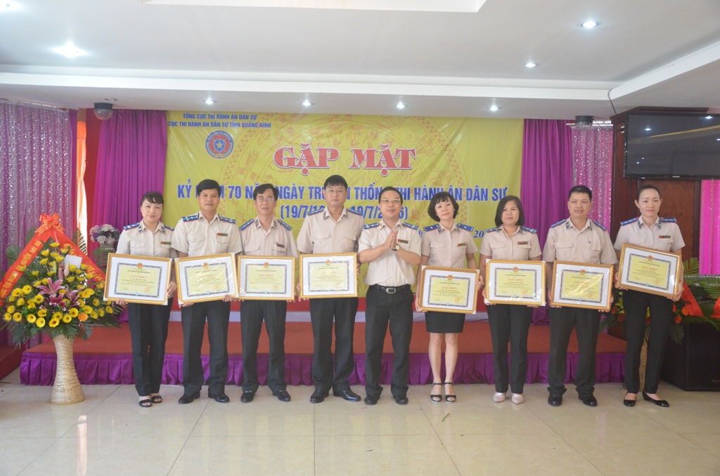 Nhân dịp này, cán bộ, công chức thi hành án dân sự trong toàn tỉnh cũng vui mừng đón nhận Bằng khen, Giấy khen của Bộ Tư pháp, Tổng cục Thi hành án dân sự, UBND tỉnh Quảng Ninh và Cục Thi hành án dân sự tỉnh: