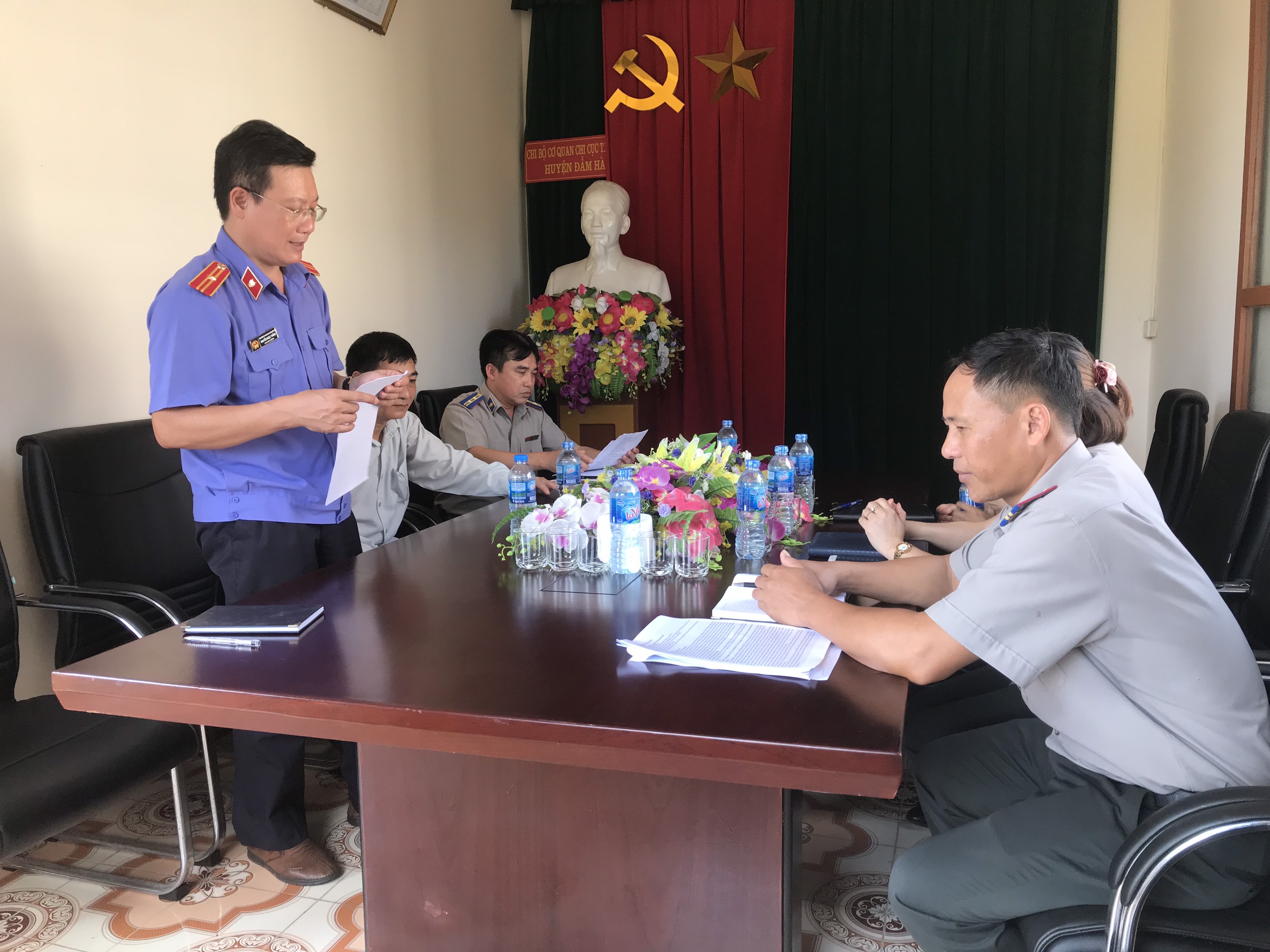 Về phía Chi cục Thi hành án dân sự huyện Đầm Hà gồm có: đồng chí Nguyễn Đông Triều - Chi cục trưởng; Đồng chí Đinh Văn Tâm - Phó Chi cục trưởng cùng các thư ký, kế toán trong đơn vị.