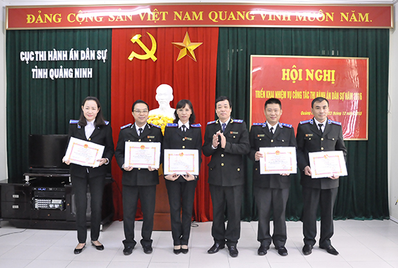 Tại Hội nghị, Cục Thi hành án dân sự cũng đã công bố quyết định khen thưởng, trao thưởng cùng kỷ niệm chương cho các cá nhân, đơn vị có thành tích xuất sắc trong công tác thi hành án năm 2015 và tổ chức lễ ký kết giao ước thi đua giữa các huyện, TX,TP năm 2016.