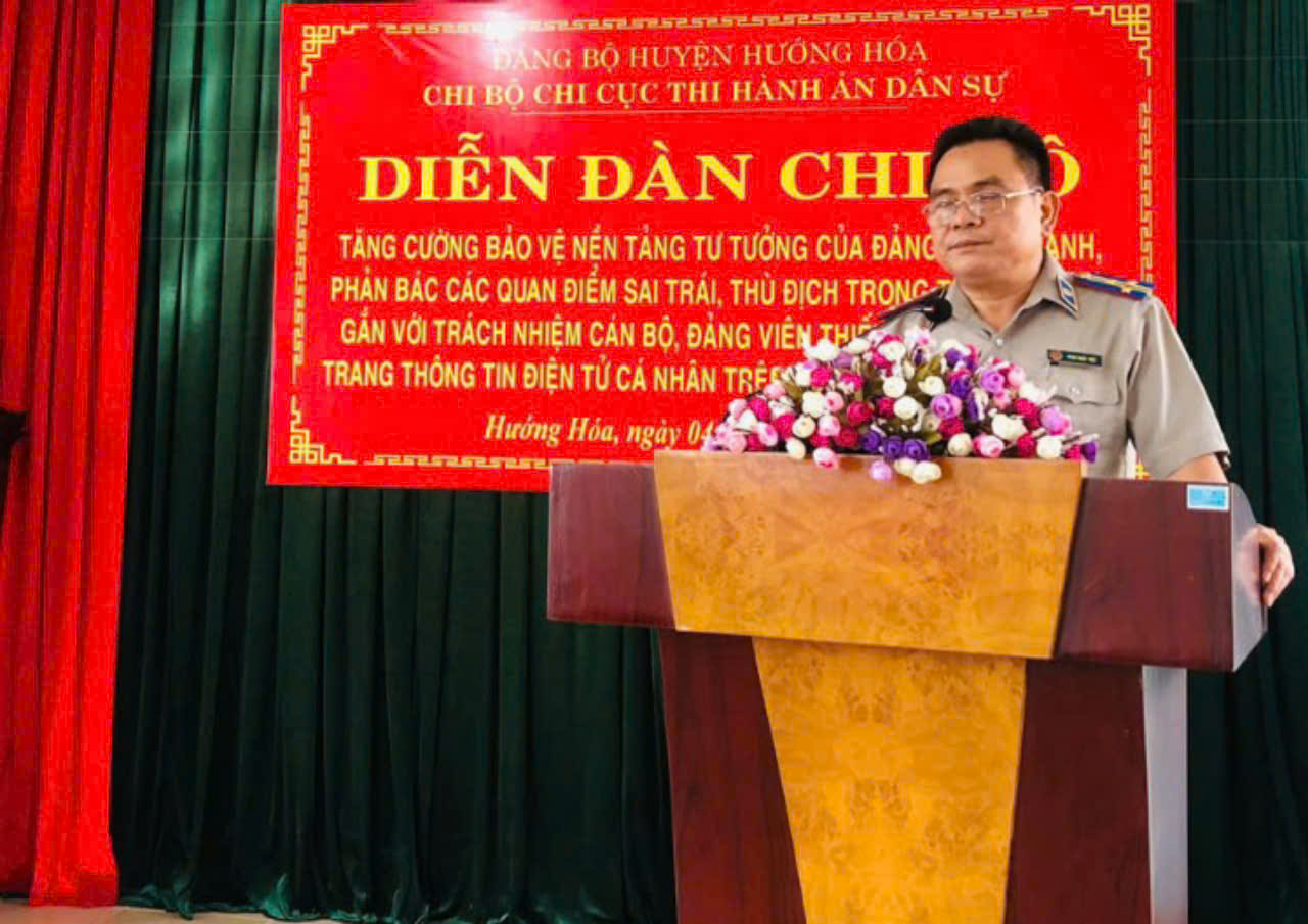 Thực hiện Hướng dẫn số 98 -HD/BTGHU, ngày 07/3/2024 của Ban Tuyên giáo Huyện ủy về tổ chức diễn đàn chi bộ năm 2024, ngày 04/9/2024, Chi bộ Chi cục Thi hành án dân sự huyện Hướng Hóa tổ chức diễn đàn chi bộ năm 2024 với chủ đề “Tăng cường bảo vệ nền tảng tư tưởng của Đảng; đấu tranh, phản bác các quan điểm sai trái, thù địch trong tình hình mới gắn với trách nhiệm cán bộ, đảng viên thiết lập và sử dụng trang thông tin điện tử cá nhân trên Internet và mạng xã hội”