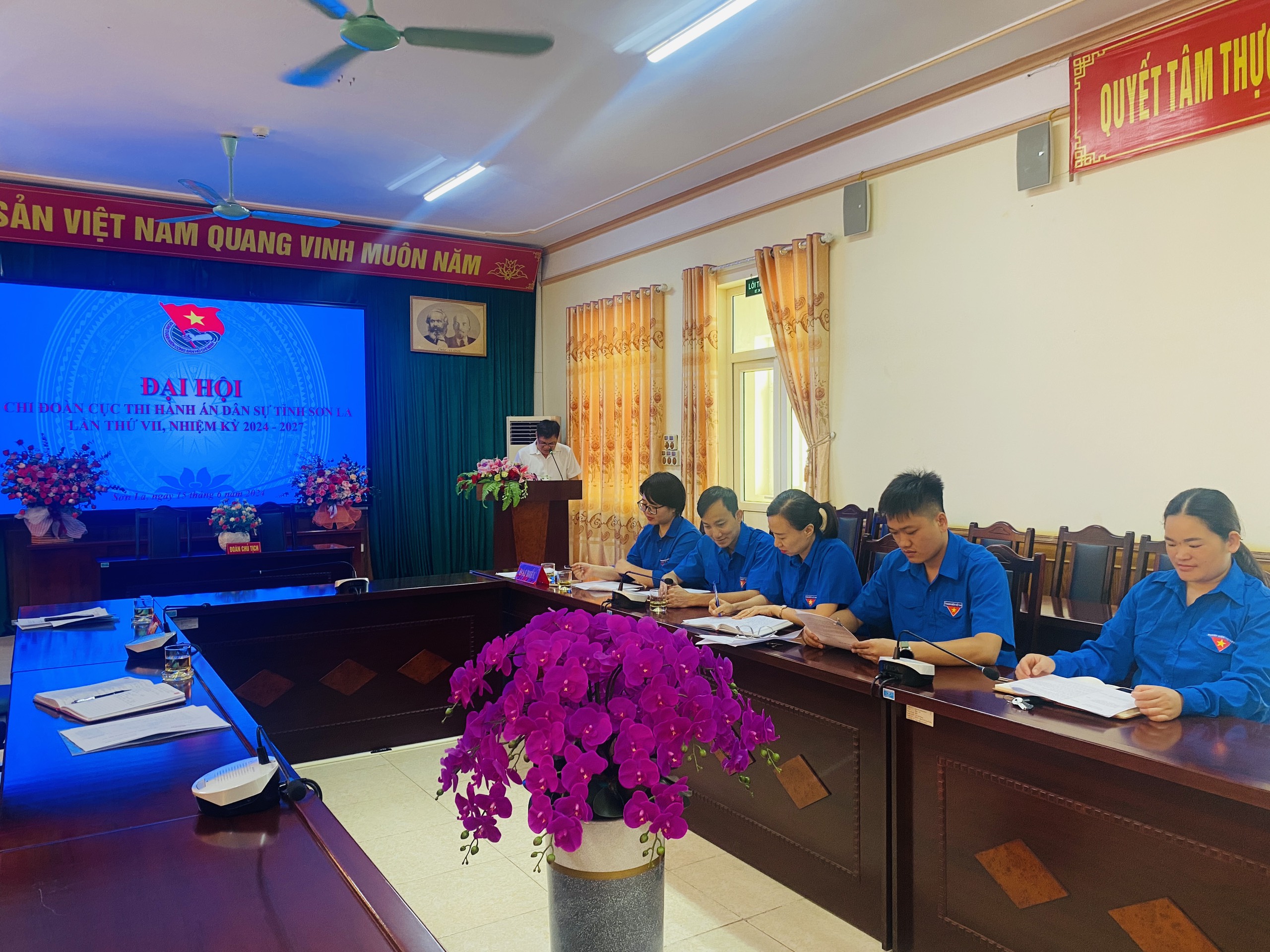 Ngày 15/6/2024, tại hội trường Cục Thi hành án dân sự tỉnh Sơn La, Chi đoàn Cục Thi hành án dân sự tỉnh Sơn La tổ chức thành công Đại hội nhiệm kỳ 2024-2027. Tham dự Đại hội, Chi đoàn Cục Thi hành án dân sự tỉnh Sơn La vinh dự được đón tiếp đồng chí Lường Quang Yên - Phó Bí thư Chi bộ, Phó Cục trưởng, Chủ tịch Công đoàn cơ sở Cục Thi hành án dân sự tỉnh Sơn La; đồng chí Nguyễn Thị Bích Trang, Chi ủy viên, Chánh Văn Phòng Cục Thi hành án dân sự tỉnh Sơn La, cùng sự có mặt của 06 các đồng chí đoàn viên của Chi đoàn.