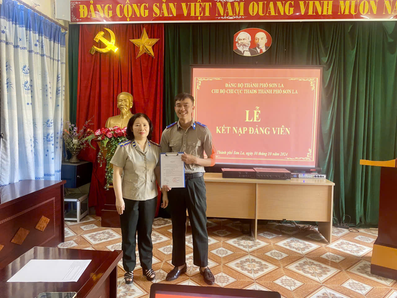 Chiều ngày 30/10/2024, Chi bộ Chi cục Thi hành án dân sự thành phố Sơn La đã trang trọng tổ chức buổi Lễ kết nạp Đảng viên đối với quần chúng ưu tú Lường Anh Quyết – Nhân viên bảo vệ tại Chi cục Thi hành án dân sự thành phố Sơn La. Tham dự và chỉ đạo buổi Lễ có đồng chí: Đỗ Hải Yến - Bí thư Chi bộ, Chi cục trưởng Chi cục Thi hành án dân sự thành phố Sơn La, cùng sự có mặt tham gia của toàn thể đảng viên Chi bộ Chi cục Thi hành án dân sự thành phố Sơn La.