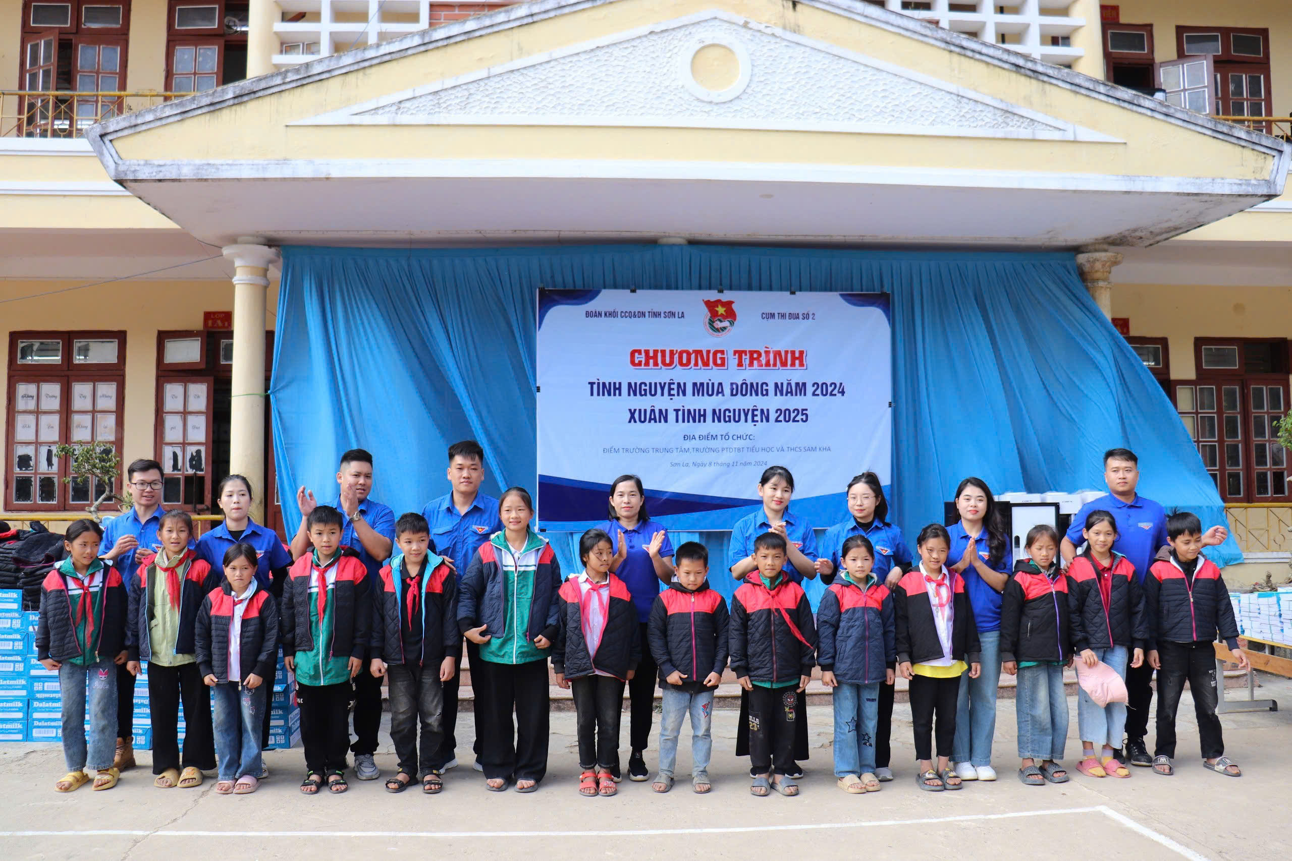 Tại buổi lễ đoàn công tác của Cụm thi đua số 2 – Đoàn Khối các cơ quan và doanh nghiệp tỉnh Sơn La, trong đó có Chi đoàn Cục THADS tỉnh đã trao tặng các cháu học sinh tại điểm Trường PTDTBT Tiểu học và THCS Sam Kha: 03 cây đun nước nóng lạnh, 01 máy lọc nước, 25 bình nước lọc, 140 thùng sữa, hơn 550 chiếc áo ấm, trên 2.000 đồ dùng học tập các loại cho nhà trường và 128 học sinh từ lớp 1 đến lớp 4 có hoàn cảnh khó khăn. Tổng kinh phí các phần quà trao tặng là: 113 triệu đồng. Số tiền trên do đoàn viên, thanh niên trong các tổ chức cơ sở Đoàn trực thuộc Cụm thi đua số 2 quyên góp, vận động ủng hộ.