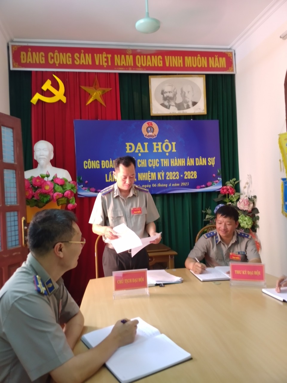 Thực hiện Kế hoạch số 21/KH-LĐLĐ ngày 01/6/2022 của Liên đoàn lao động huyện Quỳnh Nhai về Hướng dẫn Đại hội Công đoàn cơ sở, tiến tới Đại hội Công đoàn huyện lần thứ VI, nhiệm kỳ 2023-2028; Kế hoạch số 02/KH-CĐCS ngày 28/02/2023 của Công đoàn cơ sở Chi cục thi hành án dân sự về việc tổ chức đại hội Công đoàn cơ sở Chi cục thi hành án dân sự huyện Quỳnh Nhai. Được sự nhất trí của Ban thường vụ Liên Đoàn lao động huyện và Chi bộ Chi cục thi hành án dân sự. Sáng ngày 06/4/2023, Công đoàn cơ sở Chi cục thi hành án dân sự huyện Quỳnh Nhai đã tổ chức Đại hội lần thứ IV, nhiệm kỳ 2023-2028. Dự và chỉ đạo Đại hội có đồng chí Trịnh Cương Quyết - Bí thư Chi bộ và 07/07 đại biểu Công đoàn cơ sở Chi cục thi hành án dân sự huyện Quỳnh Nhai.