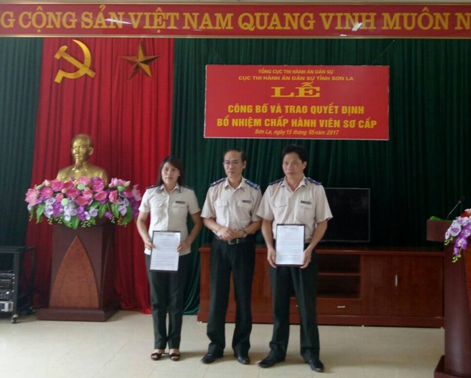 Thay mặt tập thể lãnh đạo Cục, đồng chí Nguyễn Văn Bắc – Phó cục trưởng Cục Thi hành án dân sự tỉnh Sơn La trao Quyết định bổ nhiệm của Bộ trưởng Bộ tư pháp cho 02 đồng chí, nâng tổng số chấp hành viên toàn tỉnh lên 48 đồng chí chiếm 36,9% biên chế được giao. Đồng chí đã phát biểu, giao nhiệm vụ cho các chấp hành viên mới được bổ nhiệm: phải tiếp tục nỗ lực hơn nữa trong học tập, rèn luyện, nâng cao tinh thần đạo đức cách mạng của người cán bộ tư pháp “Công bằng, liêm kiết, gần dân, hiểu dân, giúp dân, học dân”. Đồng chí tin tưởng rằng với sự quan tâm của Lãnh đạo đơn vị, sự phối hợp chặt chẽ của đội ngũ công chức cùng với sự nỗ lực cố gắng của bản thân, các đồng chí mới được bổ nhiệm sẽ hoàn thành xuất sắc nhiệm vụ chính trị được giao.