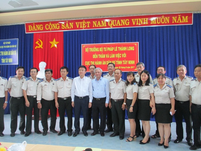 Thực hiện Chương trình công tác tại Tây Ninh, chiều ngày 28/8/2017, Bộ trưởng Bộ Tư pháp Lê Thành Long đã có buổi làm việc với Cục Thi hành án dân sự (THADS) tỉnh Tây Ninh. Tham gia đoàn công tác có đại diện các đơn vị thuộc Bộ, Tổng cục trưởng Tổng cục THADS Hoàng Sỹ Thành, phóng viên Báo Pháp luật Việt Nam. Về phía Cục THADS tỉnh Tây Ninh, có Lãnh đạo Cục, Trưởng phòng, Phó trưởng phòng chuyên môn thuộc Cục, Chi cục trưởng Chi cục THADS các huyện, thành phố và toàn thể công chức, người lao động Cục THADS tỉnh Tây Ninh.