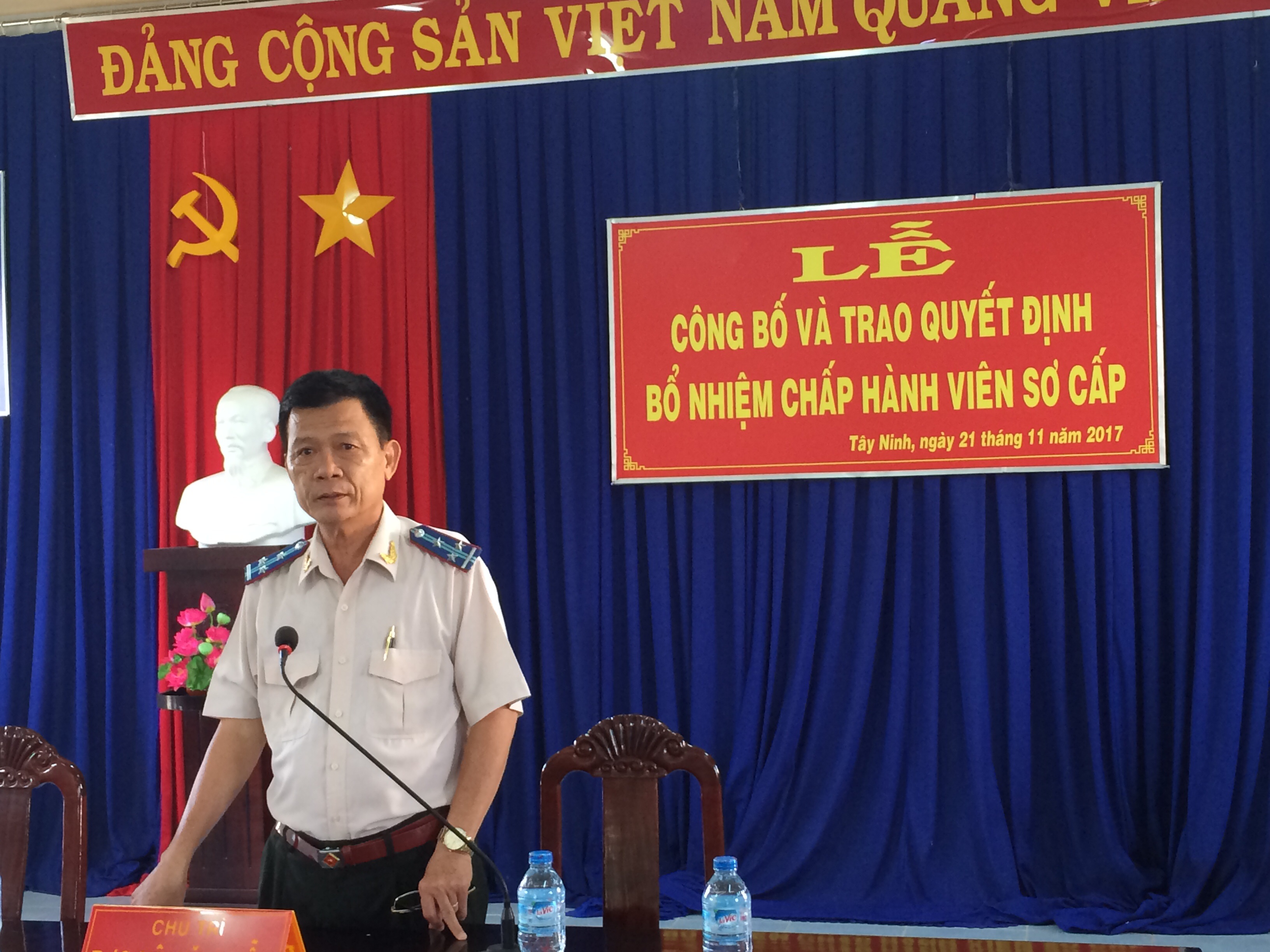 Ngày 21/11/2017, tại Cục Thi hành án dân sự tỉnh Tây Ninh, thừa uỷ quyền của Bộ trưởng Bộ Tư pháp, Cục Thi hành án dân sự tỉnh Tây Ninh tổ chức Lễ công bố, trao quyết định bổ nhiệm Chấp hành viên sơ cấp cho 07 công chức đang công tác tại các cơ quan Thi hành án dân sự trong tỉnh. Tham dự buổi Lễ có ông Lê Văn Tiễn - Cục trưởng, các Phó Cục trưởng, Lãnh đạo các Phòng chuyên môn thuộc Cục, Lãnh đạo của 04 Chi cục THADS huyện có công chức được bổ nhiệm Chấp hành viên sơ cấp cùng toàn thể công chức, người lao động thuộc Cục.