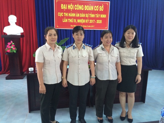 Thực hiện Kế hoạch số 909/KH-CĐVC ngày 07/3/2017 của Ban Thường vụ Công đoàn Viên chức tỉnh về việc tổ chức Đại hội Công đoàn cơ sở tiến tới Đại hội III Công đoàn Viên chức tỉnh nhiệm kỳ 2017-2022, được sự quan tâm của Chi ủy, Lãnh đạo Cục, chiều ngày 31/8/2017, tại Cục Thi hành án dân sự tỉnh Tây Ninh đã tổ chức Đại hội Công đoàn cơ sở lần thứ IV, nhiệm kỳ 2017 – 2022. Tham dự và phát biểu chỉ đạo hội nghị có bà Lê Thị Thanh Phương - Phó Chủ tịch Công đoàn Viên chức tỉnh. Về phía Cục Thi hành án dân sự tỉnh Tây Ninh có ông Lê Văn Tiễn - Cục trưởng; ông Thành Văn Trạc – Bí thư Chi bộ, ông Ngô Tấn Hồng - Phó Cục trưởng, Ban Chấp hành Công đoàn cùng toàn thể công chức, người lao động trong đơn vị.