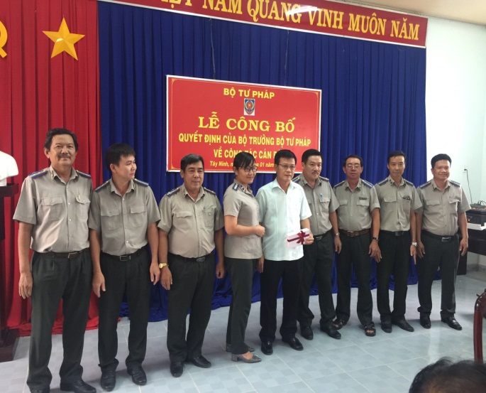 Thực hiện Quyết định của Bộ trưởng Bộ Tư pháp và sự chỉ đạo của Tổng cục Thi hành án dân sự. Chiều ngày 02/01/2019, Cục Thi hành án dân sự tỉnh Tây Ninh đã tổ chức Lễ công bố Quyết định số 2612/QĐ-BTP ngày 23/10/2018 của Bộ trưởng Bộ Tư Pháp về việc cho nghỉ hưu theo quy định đối với ông Lê Văn Tiễn, Cục trưởng Cục Thi hành án dân sự tỉnh Tây Ninh và Quyết định số 3071/QĐ-BTP ngày 24 tháng 12 năm 2018 của Bộ trưởng Bộ Tư Pháp về việc giao phụ trách Cục thi hành án dân sự tỉnh Tây Ninh đối với ông Thành Văn Trạc, Phó Cục trưởng Cục Thi hành án dân sự tỉnh Tây Ninh.
