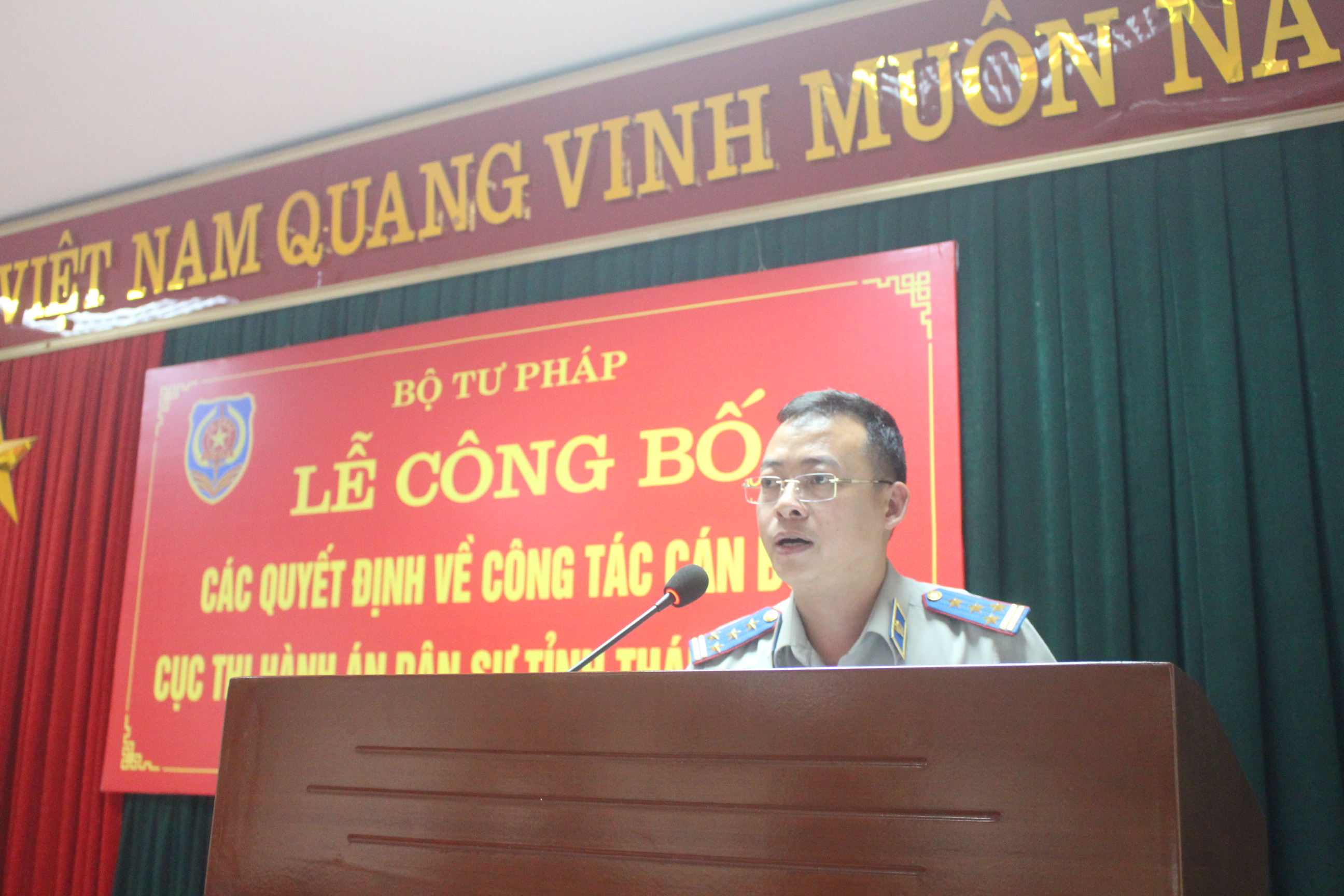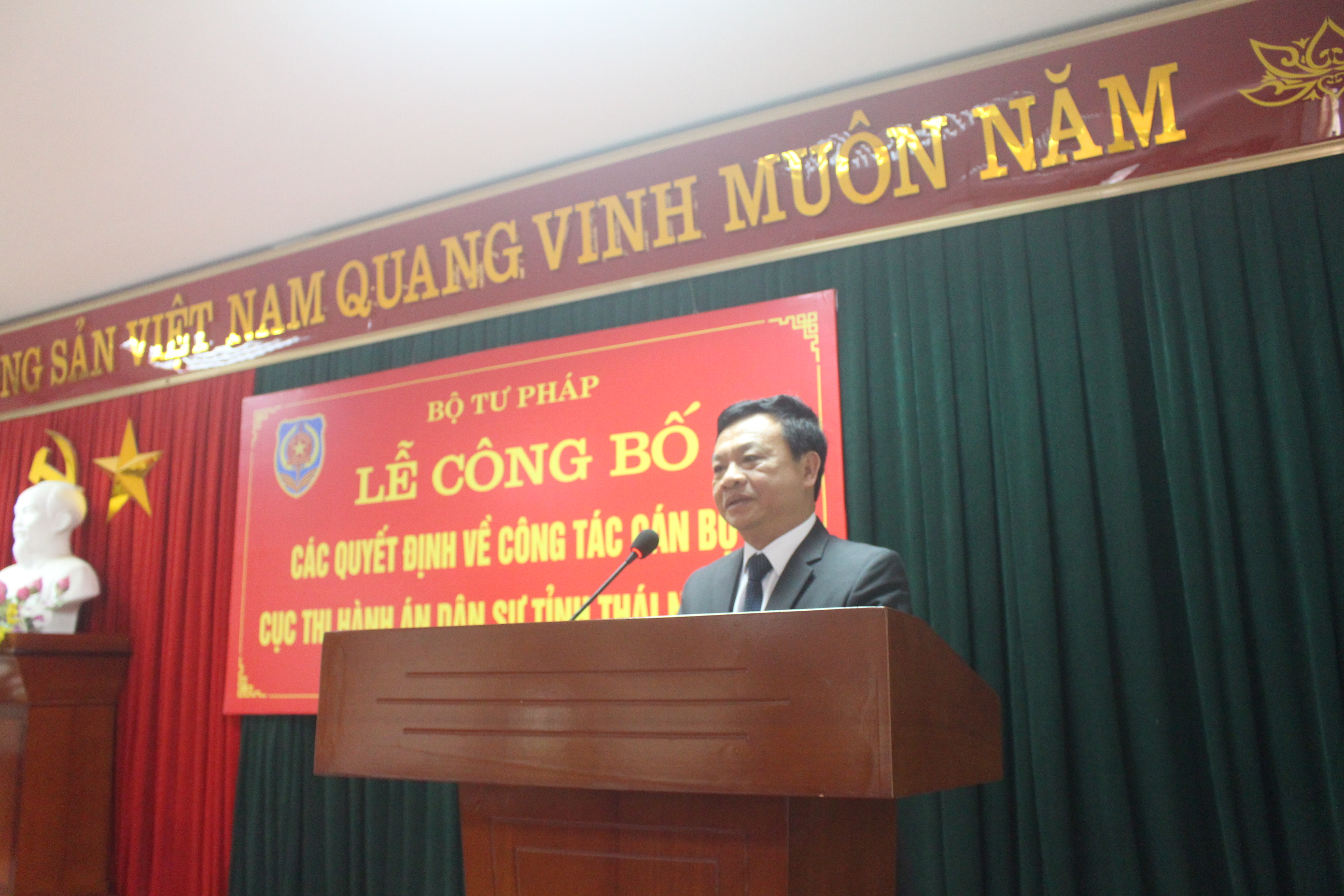 Thừa ủy quyền của Bộ trưởng Bộ Tư pháp đến Thái Nguyên dự buổi Lễ, Thứ trưởng Đặng Hoàng Oanh đã trao quyết định nghỉ hưu cho đồng chí Dương Văn Quyết và quyết định bổ nhiệm Cục trưởng Cục THADS tỉnh Thái Nguyên đối với đồng chí Nguyễn Xuân Tùng.