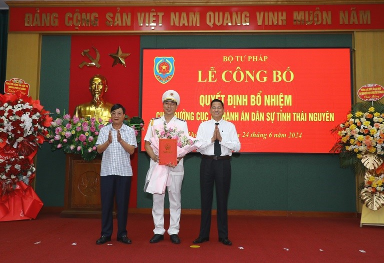 Sáng ngày 24/6/2024, Tổng cục Thi hành án dân sự Bộ Tư pháp tổ chức Lễ công bố Quyết định bổ nhiệm Cục trưởng Cục Thi hành án dân sự tỉnh Thái Nguyên. Dự hội nghị có đồng chí Nguyễn Văn Lực, Phó Tổng cục trưởng Tổng cục Thi hành án dân sự; đại diện lãnh đạo Vụ Tổ chức cán bộ Tổng cục Thi hành án dân sự. Về phía tỉnh Thái Nguyên có đồng chí Đặng Xuân Trường, Ủy viên Ban Thường vụ Tỉnh uỷ, Phó chủ tịch thường trực UBND tỉnh, Trưởng ban chỉ đạo THADS tỉnh Thái Nguyên; Đồng chí Phạm Thái Hanh, Ủy viên Ban Thường vụ Tỉnh ủy, Trưởng ban Dân vận Tỉnh uỷ Thái Nguyên; Đồng chí Phạm Văn Thọ, Ủy viên Ban Thường vụ Tỉnh ủy, Trưởng Ban Nội chính Tỉnh uỷ Thái Nguyên. Đồng chí Hoàng Văn Hùng, Ủy viên Ban Thường vụ Tỉnh ủy, Chủ nhiệm Ủy ban kiểm tra Tỉnh ủy Thái Nguyên. Đồng chí Vũ Duy Hoàng Ủy viên Ban Thường vụ Tỉnh ủy, Trưởng ban Tuyên giáo Tỉnh ủy Thái Nguyên. Tham dự buổi lễ còn có các đồng chí lãnh đạo Đảng uỷ khối, Sở Tư pháp, Toà án, Viện kiểm sát, Công an và các sở, ban, ngành của tỉnh Thái nguyên và toàn thể lãnh đạo chủ chốt cơ quan Thi hành án dân sự tỉnh Thái Nguyên.