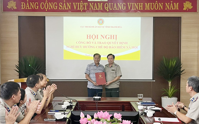 Cùng ngày, Cục THADS tỉnh đã tổ chức hội nghị công bố quyết định nghỉ hưu trí hưởng chế độ bảo hiểm xã hội đối với đồng chí Vũ Duy Khang, Phó Trưởng phòng Tổ chức cán bộ. Phát biểu tại Hội nghị, đồng chí Hoàng Văn Truyền, Bí thư Đảng ủy, Cục trưởng đã ghi nhận và biểu dương những đóng góp của đồng chí Vũ Duy Khang trong hơn 35 năm công tác. Đồng chí Vũ Duy Khang đã cùng tập thể Phòng Tổ chức cán bộ tham mưu cho Đảng ủy, Lãnh đạo Cục hoàn thành các mục tiêu, nhiệm vụ về công tác cán bộ, giữ vững đoàn kết nội bộ, được các cấp có thẩm quyền ghi nhận thành tích bằng các Bằng khen, Giấy khen. Cùng với lời chúc sức khỏe tới đồng chí và gia đình, đồng chí Cục trưởng mong muốn sau khi nghỉ hưu, đồng chí Vũ Duy Khang sẽ tiếp tục phát huy vai trò đảng viên, cán bộ gương mẫu, có nhiều hoạt động tích cực tại địa phương.