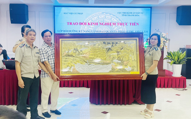 Không chỉ giới hạn trong các kỹ năng theo chương trình, đồng chí Cục trưởng còn nhiệt tình, tâm huyết chia sẻ một số kinh nghiệm sau nhiều năm làm lãnh đạo quản lý đối với một số mặt trong công tác thi hành án dân sự bằng các slide, hình ảnh thực tiễn ghi lại quá trình tác nghiệp của chấp hành viên, công chức làm công tác thi hành án dân sự tại Thanh Hóa đã làm lớp học sôi nổi, tạo không khí thân mật, vui vẻ giữa các học viên.