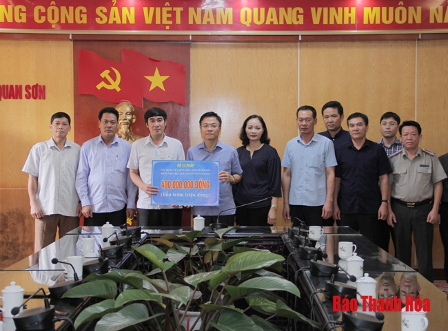 Nhân dịp này, Cục thi hành án Dân sự tỉnh Thanh Hóa đã trao tặng hỗ trợ cho huyện Quan Sơn 50 triệu đồng.