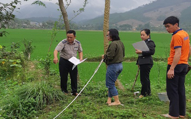 Ngày 11 tháng 3 năm 2021, Chi cục Thi hành án dân sự huyện Thường Xuân đã phối hợp cùng chính quyền địa phương xã Vạn Xuân và các cơ quan liên quan thực hiện thành công việc giao, nhận tài sản cho đương sự để trừ vào tiền thi hành án. Sau khi xác định mốc giới và đóng cọc định vị tại diện tích đất 198 m2, Thửa số 986; tờ bản đồ số: 161 - BĐĐC chính quy xã Vạn Xuân; Địa chỉ thửa đất: Thôn Lùm Nưa, xã Vạn Xuân, huyện Thường Xuân, tỉnh Thanh Hóa; Thời hạn sử dụng: Đất ở lâu dài; Số vào sổ cấp giấy chứng nhận QSD đất: CH 0179. (Giấy chứng nhận quyền sử dụng đất, quyền sở hữu nhà ở và tài sản khác gắn liền với đất số: CB 752052 do UBND huyện Thường Xuân cấp ngày 21 tháng 12 năm 2016). Chấp hành viên tiến hành giao cho người được thi hành án là ông Lê Văn Thái và bà Vi Thị Lan nhận để trừ đi số tiền ông Vi Văn Tiến và bà Cầm Thị Nương nợ ông Lê Văn Thái và bà Vi Thị Lan. Ông Lê Văn Thái và bà Vi Thị Lan đã nhận đủ, đúng hai loại tài sản như đã thỏa thuận và không có ý kiến gì khác.