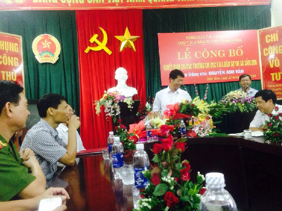 1. Ngày 22/9 /2015, tại trụ sở Chi cục Thi hành án dân sự thị xã Sầm Sơn diễn ra Lễ công bố quyết định bổ nhiệm Chi cục trưởng Chi cục Thi hành án dân sự thị xã Sầm Sơn đối với đồng chí Nguyễn Anh Văn. Tham dự buổi Lễ có các đồng chí đại diện Lãnh đạo Thị ủy, HĐND, UBND thị xã, các cơ quan trong Khối Nội chính (TAND, VKSND, Công an) và một số ban, ngành, đoàn thể thị xã Sầm Sơn. Đại diện Cục Thi hành án có đồng chí Lê Văn Khoa - Phó Cục trưởng, đồng chí Vũ Duy Khang - Phó trưởng Phòng Tổ chức cán bộ, cùng toàn thể công chức, người lao động Chi cục Thi hành án dân sự thị xã Sầm Sơn. Thay mặt lãnh đạo Cục và lãnh đạo Thị xã, đồng chí Lê Văn Khoa -Phó Cục trưởng trao Quyết định, đồng chí Hoàng Khắc Nhu-Phó Chủ tịch UBND, Trưởng Ban chỉ Thi hành án dân sự thị xã Sầm Sơn tặng hoa và chúc mừng đồng chí Nguyễn Anh Văn; đồng thời phát biểu ý kiến chỉ đạo và giao nhiệm vụ cho đồng chí Nguyễn Anh Văn, yêu cầu đồng chí trên cương vị, vị trí công tác mới cần nỗ lực phấn đấu, nâng cao trình độ chuyên môn, rèn luyện phẩm chất đạo đức, tập hợp đoàn kết và gương mẫu trong mọi công việc, tích cực tham mưu cho Thường trực Thị ủy, UBND- Ban chỉ đạo Thi hành án dân sự thị xã và Ngành cấp trên thực hiện tốt công tác thi hành án dân sự trên địa bàn, góp phần hoàn thành tốt nhiệm vụ chung .