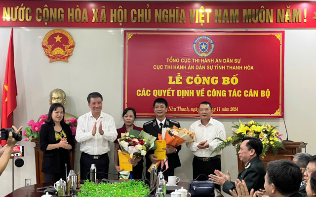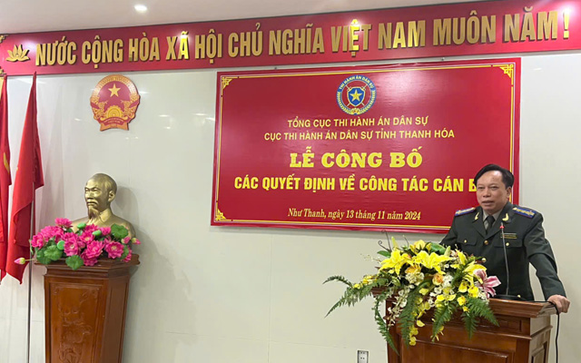 Thực hiện các quyết định về công tác tổ chức cán bộ; ngày 13/11/2024, tại Chi cục Như Thanh, Cục THADS tỉnh đã tổ chức buổi Lễ công bố và trao Quyết định nghỉ hưu để hưởng chế độ bảo hiểm xã hội đối với đồng chí Lại Thị Thu và Quyết định điều động, bổ nhiệm công chức giữ chức vụ lãnh đạo đối với đồng chí Trương Anh Quyết.