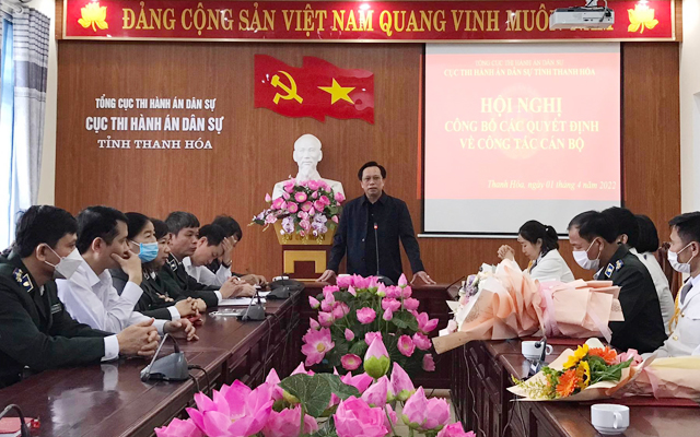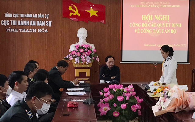 (1) Quyết định số 114/QĐ-TCTHADS ngày 09/02/2022 của Tổng cục trưởng Tổng cục THADS về việc bổ nhiệm lại công chức giữ chức vụ lãnh đạo đối với ông Lê Quốc Hưng, Chấp hành viên trung cấp, Chi cục trưởng Chi cục THADS huyện Vĩnh Lộc. (2) Quyết định số 154/QĐ-CTHADS ngày 28/3/2022 của Cục trưởng Cục THADS tỉnh Thanh Hóa về việc điều động, bổ nhiệm công chức giữ chức vụ lãnh đạo đối với ông Lê Văn Khuê, Chấp hành viên sơ cấp, Phó Chi cục trưởng Chi cục THADS huyện Đông Sơn giữ chức vụ Phó Chi cục trưởng Chi cục THADS huyện Như Thanh. (3) Quyết định số 155/QĐ-CTHADS ngày 28/3/2022 của Cục trưởng Cục THADS tỉnh Thanh Hóa về việc điều động, bổ nhiệm công chức giữ chức vụ lãnh đạo đối với ông Nguyễn Đăng Khoa, Chấp hành viên sơ cấp Chi cục THADS huyện Ngọc Lặc giữ chức vụ Phó Chi cục trưởng Chi cục THADS huyện Lang Chánh. (4) Quyết định số 156/QĐ-CTHADS ngày 28/3/2022 của Cục trưởng Cục THADS tỉnh Thanh Hóa về việc điều động, bổ nhiệm công chức giữ chức vụ lãnh đạo đối với bà Lê Thị Hương Lan, Chấp hành viên sơ cấp, Phó Trưởng phòng Nghiệp vụ và tổ chức thi hành án giữ chức vụ Phó Chi cục trưởng Chi cục THADS huyện Quảng Xương. (5) Quyết định số 64/QĐ-CTHADS ngày 15/02/2022 về việc bổ nhiệm lại công chức giữ chức vụ lãnh đạo đối với bà Lê Thị Lâm, Phó Chi cục trưởng Chi cục THADS huyện Thọ Xuân. (6) Quyết định số 150/QĐ-CTHADS ngày 22/3/2022 của Cục trưởng Cục THADS tỉnh Thanh Hóa về việc tiếp nhận vào làm công chức và bổ nhiệm chức vụ Phó Chánh Văn phòng Cục THADS tỉnh Thanh Hóa đối với ông Lê Hồng Quân, Phó Giám đốc Công ty Môi trưởng và Công trình đô thị Thanh Hóa.