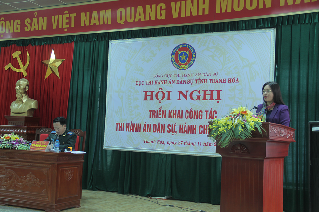 Phát biểu chỉ đạo Hội nghị đồng chí Lê Thị Thìn nhấn mạnh: trong năm 2019 các cơ quan THADS tỉnh Thanh Hóa cần phải tập trung phối hợp chặt chẽ với các ngành, các cấp triển khai thực tốt Chỉ thị số 16 - CT/TU ngày 05/9/2018 của Ban Thường vụ Tỉnh ủy Thanh Hóa về tăng cường sự lãnh đạo của Đảng đối với công tác THADS, hành chính trên địa bàn tỉnh; Tiếp tục thực hiện có hiệu quả Kế hoạch số 99/KH-UBND ngày 08/6/2017 của UBND tỉnh Thanh Hóa về thực hiện Chỉ thị số 05/CT-TTg ngày 06/02/2017 của Thủ tướng Chính phủ về việc tăng cường công tác THADS; Tăng cường hiệu quả tổ chức thi hành án, bảo đảm hoàn thành các chỉ tiêu, nhiệm vụ được giao, ưu tiên thi hành dứt điểm các vụ việc có điều kiện thi hành, đặc biệt là các vụ án tín dụng, ngân hàng; Tham mưu cho UBND tỉnh tăng cường kỷ luật, kỷ cương trong chấp hành pháp luật tố tụng hành chính; Phối hợp với các cơ quan, đơn vị liên quan thực hiện nghiêm túc ý kiến chỉ đạo của Trưởng Ban Chỉ đạo THADS tỉnh tại Hội nghị ngày 05/11/2018; Tiếp tục nâng cao chất lượng, nề nếp công tác tiếp dân, giải quyết khiếu nại, tố cáo; Thực hiện tốt cải cách hành chính và ứng dụng mạnh mẽ công nghệ thông tin trong thi hành án.