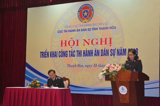 Kết thúc Hội nghị Cục Thi hành án dân sự tỉnh Thanh Hóa đã thông qua bản giao ước thi đua và tiến hành phát động phong trào thi đua năm 2018. Đại diện các phòng chuyên môn thuộc Cục và 27 Chi cục Thi hành án dân sự huyện, thị xã, thành phố trong tỉnh cùng ký kết giao ước thi đua, quyết tâm hoàn thành nhiệm vụ thi hành án dân sự năm 2018.