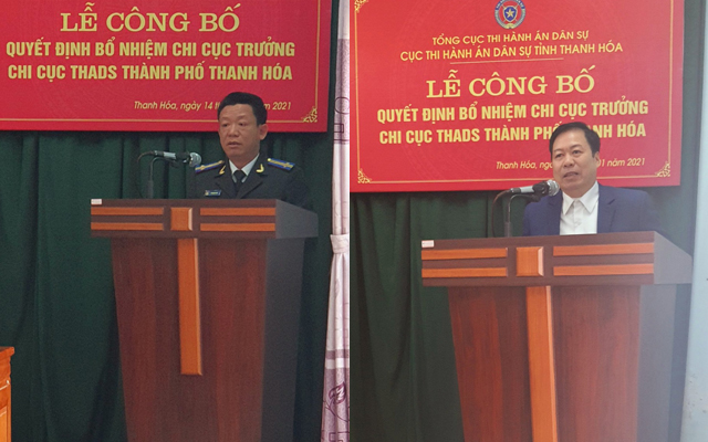 Sau khi công bố Quyết định, đồng chí Bùi Mạnh Khoa - Bí thư đảng ủy, Cục trưởng Cục THADS tỉnh đã trao Quyết định bổ nhiệm về việc bổ nhiệm công chức giữ chức vụ lãnh đạo cho đồng chí Phạm Văn Tú, tặng hoa chúc mừng và phát biểu giao nhiệm vụ đối với đồng chí Phạm Văn Tú. Đồng chí Cục trưởng yêu cầu: trên cương vị là người đứng đầu đơn vị, đồng chí Phạm Văn Tú cần tiếp tục phát huy những kết quả đã đạt được, tiếp tục gương mẫu trong thực hiện nhiệm vụ, giữ gìn đoàn kết nội bộ; sát sao đối với từng Chấp hành viên, công chức, người lao động để quản lý, điều hành đơn vị hoàn thành xuất sắc nhiệm vụ trong nhiệm kỳ và trước mắt là năm 2021; tăng cường kiểm tra việc thực thi công vụ; tranh thủ sự lãnh đạo, chỉ đạo của cấp ủy, chính quyền địa phương; tiếp tục thực hiện tốt công tác tham mưu cho cấp ủy, chính quyền trong việc quản lý và tổ chức thi hành án; phối hợp tốt với các cơ quan, ban, ngành liên quan, tập trung giải quyết các vụ việc khó khăn, phức tạp; kết quả thi hành án năm sau phải cao hơn năm trước. Đồng thời, đồng chí Bùi Mạnh Khoa cũng đề nghị Thành ủy, HĐND - UBND và các ban, ngành của thành phố Thanh Hóa thường xuyên quan tâm, chỉ đạo và phối hợp, hỗ trợ công tác THADS trên địa bàn thành phố.