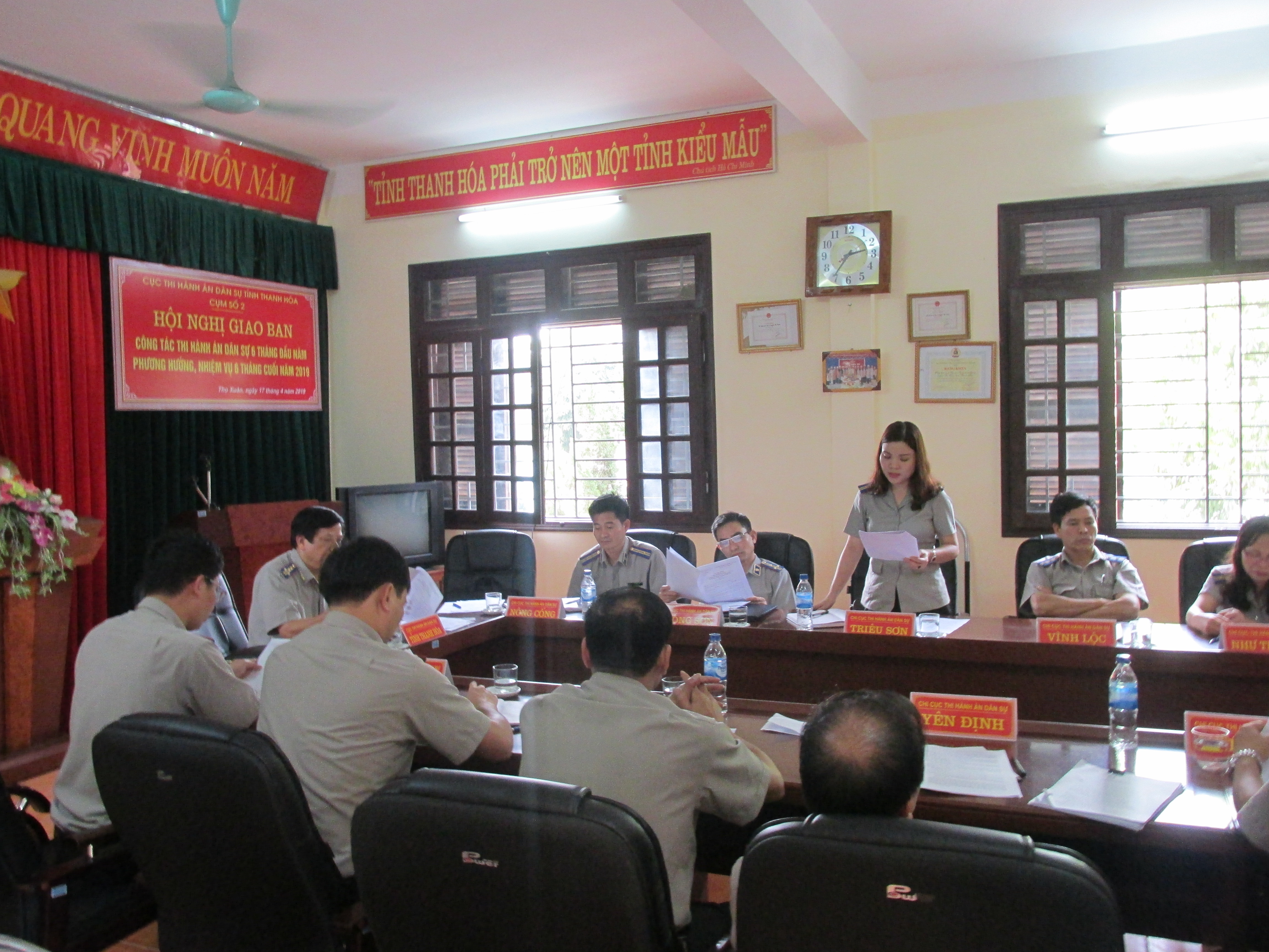 Ngày 17/4/2019, tại Chi cục Thi hành án dân sự huyện Thọ Xuân, Cụm thi đua, cụm giao ban số 2 (gồm 9 đơn vị: Thọ Xuân, Triệu Sơn, Đông Sơn, Như Thanh, Như Xuân, Nông Cống, Yên Định, Thiệu Hóa, Vĩnh Lộc) đã tổ chức hội nghị giao ban công tác thi hành án dân sự 6 tháng đầu năm, phương hướng, nhiệm vụ 6 tháng cuối năm 2019.