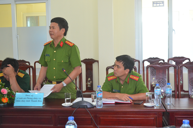 Đại diện Bộ CHQS tỉnh và Cảnh sát PCCC phát biểu ý kiến