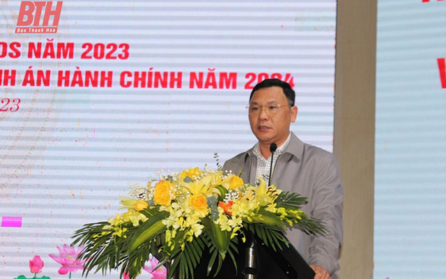 Đồng chí Phó Chủ tịch Thường trực UBND tỉnh, Trưởng Ban chỉ đạo THADS tỉnh Nguyễn Văn Thi phát biểu chỉ đạo tại hội nghị