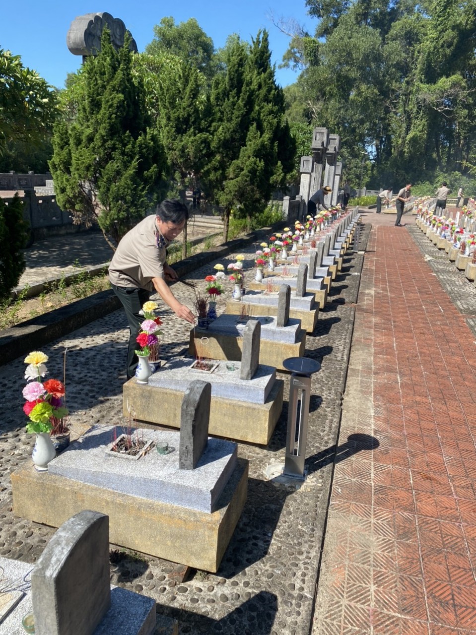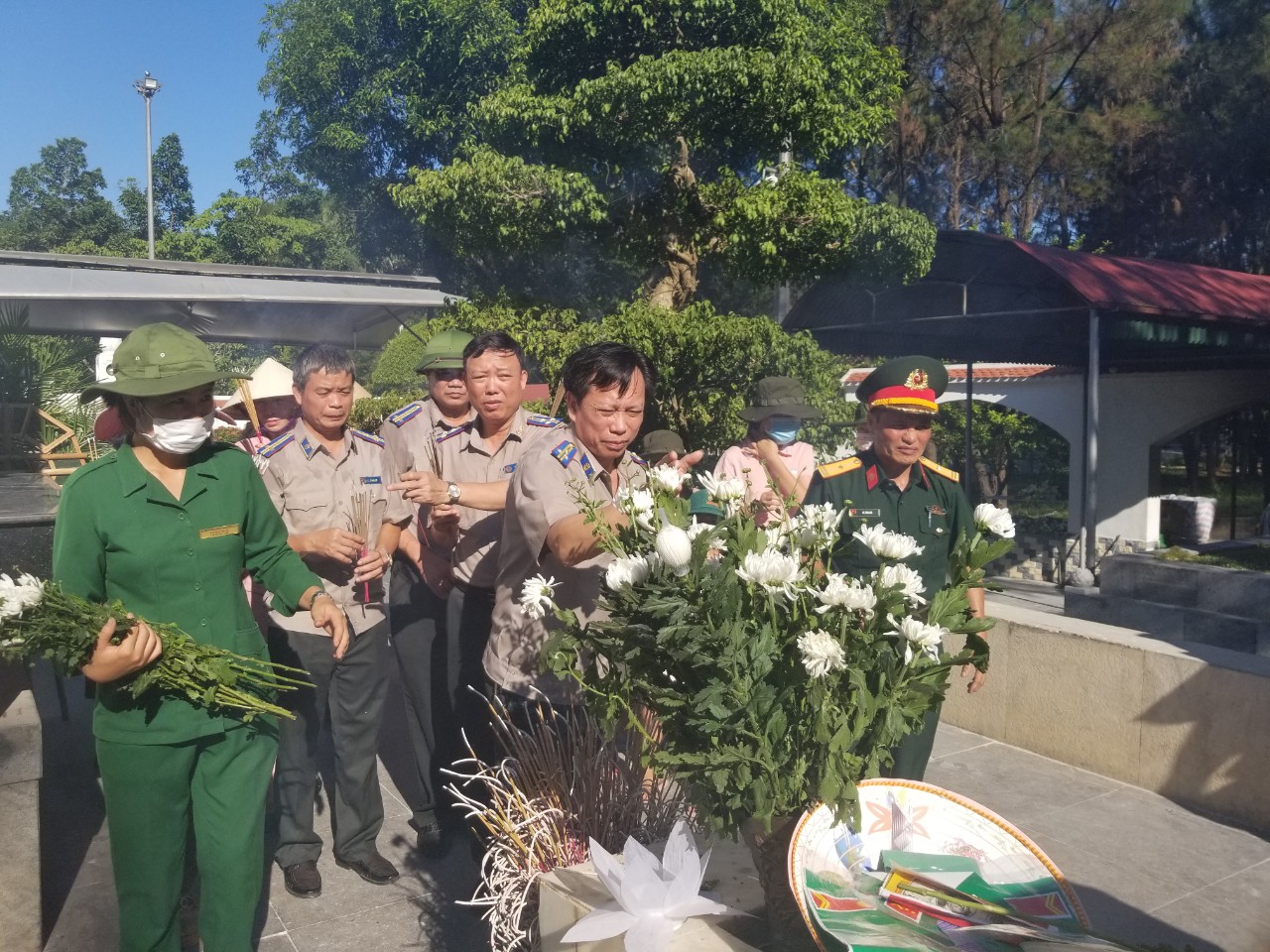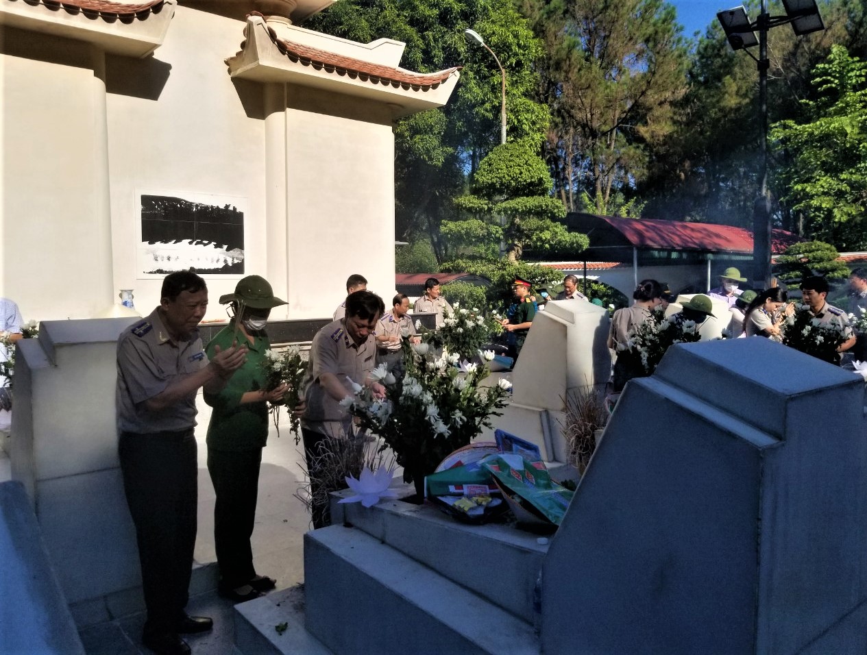 Tại Nghĩa trang liệt sĩ quốc gia Trường Sơn, Đoàn công tác đã đặt vòng hoa, dâng hương tại Đài tưởng niệm tưởng nhớ công lao to lớn của các anh hùng liệt sĩ đã anh dũng hy sinh trong cuộc kháng chiến vĩ đại bảo vệ tổ quốc. Trong không khí trang nghiêm, thành kính, trước anh linh của các anh hùng liệt sỹ, các thành viên trong đoàn công tác đã kính cẩn nghiêng mình, bày tỏ lòng biết ơn vô hạn, sự tri ân sâu sắc đối với công lao to lớn của các thế hệ cha anh đã hiến trọn tuổi thanh xuân, hy sinh vì độc lập dân tộc, tự do cho Tổ quốc; nguyện sẽ tiếp bước thế hệ cha anh đi trước, nỗ lực vượt qua mọi khó khăn, phấn đấu hoàn thành xuất sắc các nhiệm vụ chính trị được giao, xứng đáng với sự hy sinh anh dũng của các anh hùng, liệt sĩ. Sau lễ viếng, các đồng chí trong đoàn đã đi thắp hương trên các phần mộ, thể hiện lòng tri ân sâu sắc đến các liệt sĩ.