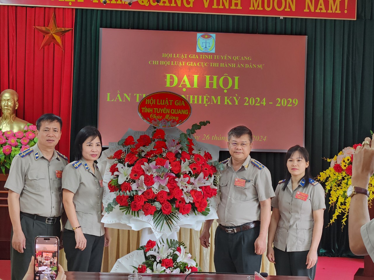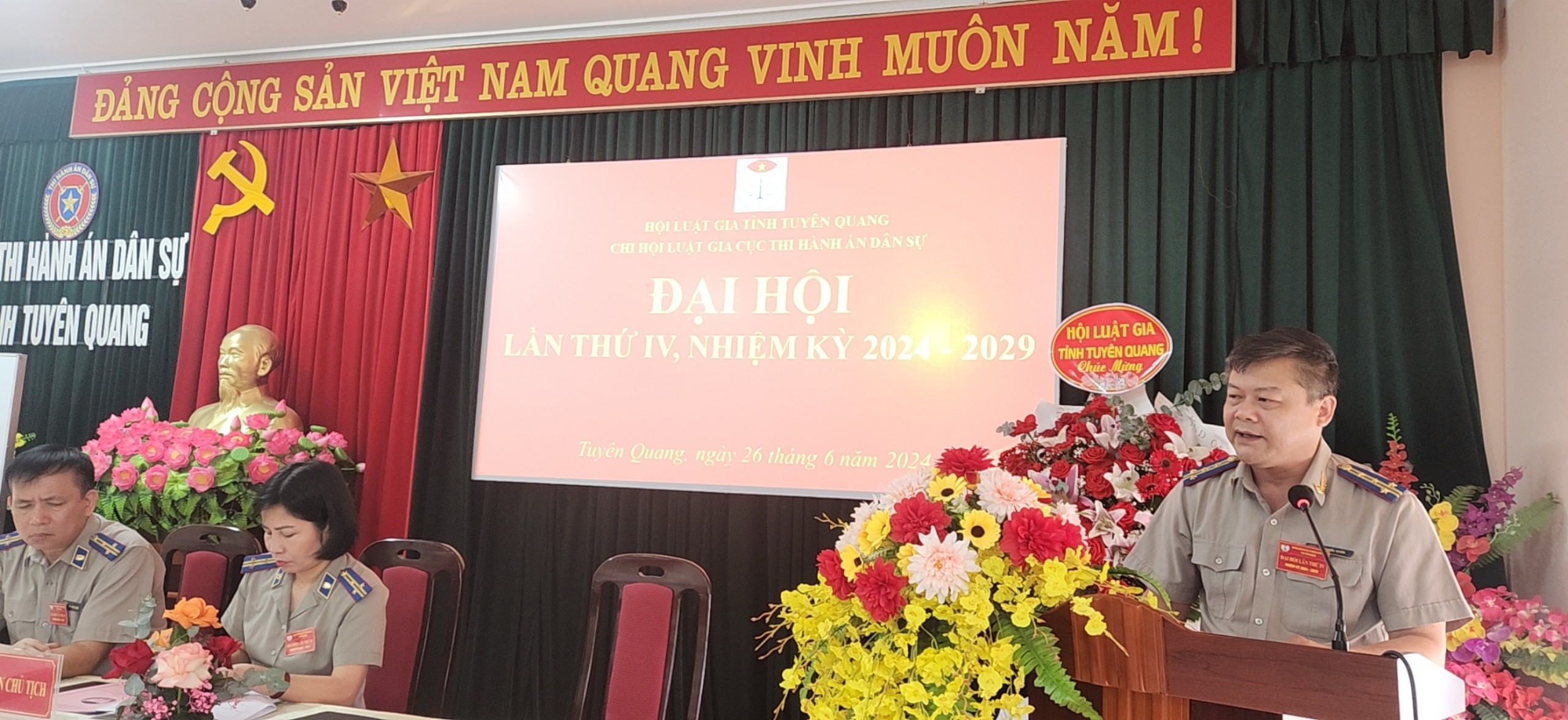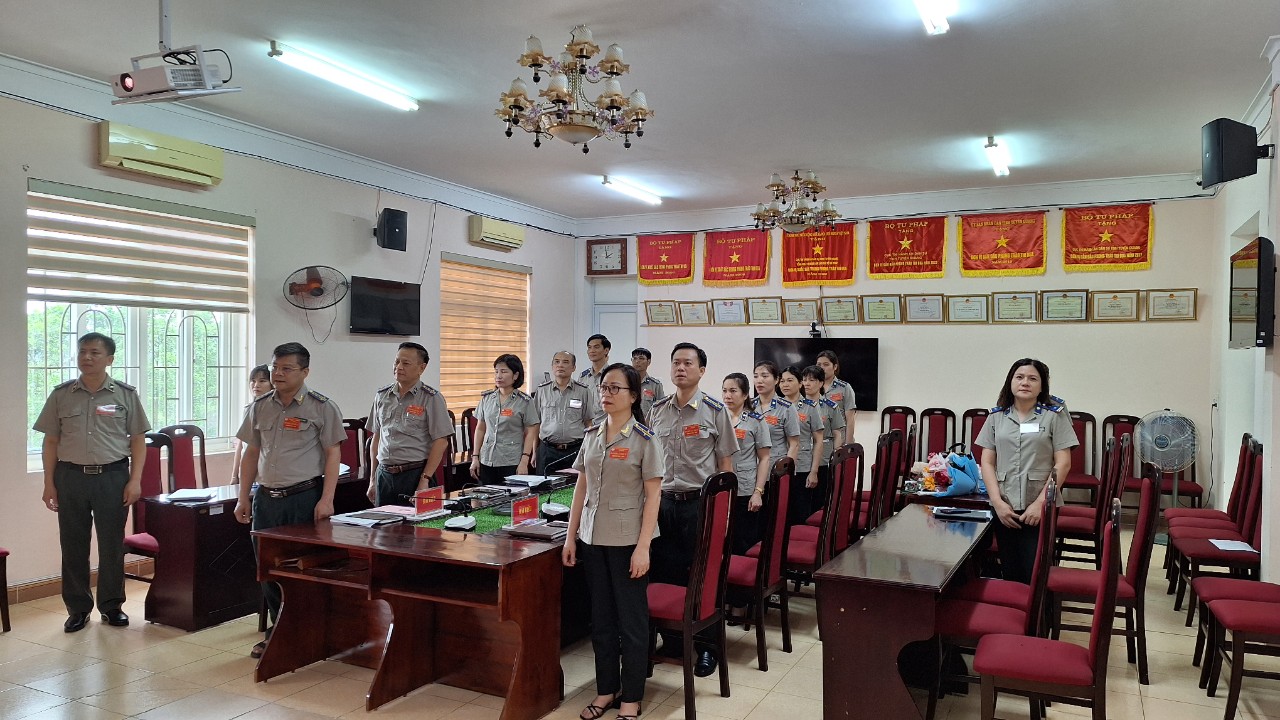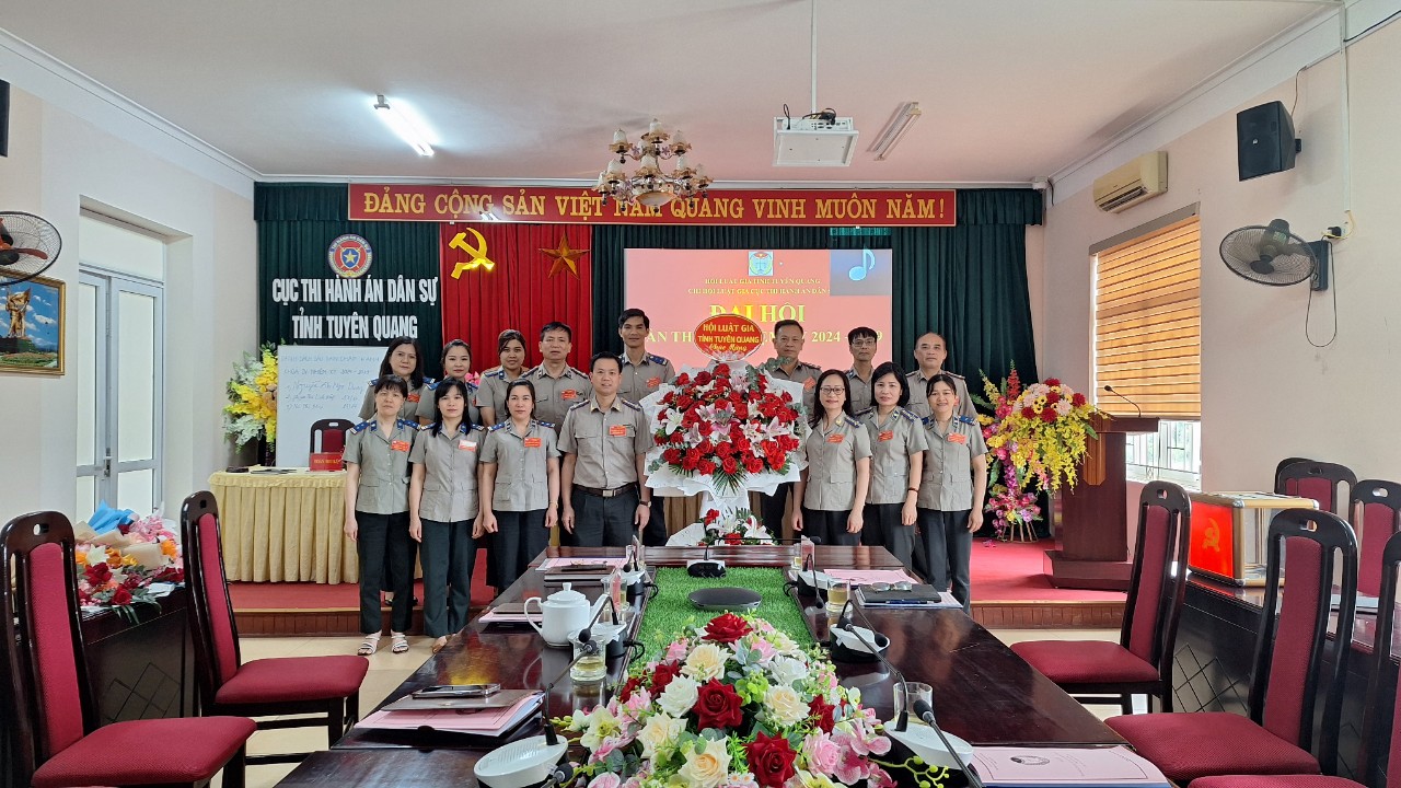 Thực hiện Kế hoạch số 462/KH-HLG và Hướng dẫn số 463/HD-HLG ngày 06/12/2024 của Hội Luật gia tỉnh Tuyên Quang về tổ chức Đại hội đại biểu Hội Luật gia tỉnh Tuyên Quang lần thứ VI và Đại hội Hội Luật gia các cấp nhiệm kỳ 2024 - 2029, ngày 26/6/2024, Chi hội Luật gia Cục Thi hành án dân sự tỉnh Tuyên Quang đã tổ chức Đại hội lần thứ IV, nhiệm kỳ 2024 - 2029. Tham dự Đại hội có đồng chí Nguyễn Tuyên - Ủy viên Ban Thường vụ Hội Luật gia tỉnh Tuyên Quang, Bí thư Chi bộ, Cục trưởng Cục Thi hành án dân sự tỉnh Tuyên Quang và 17/17 hội viên của Chi hội.