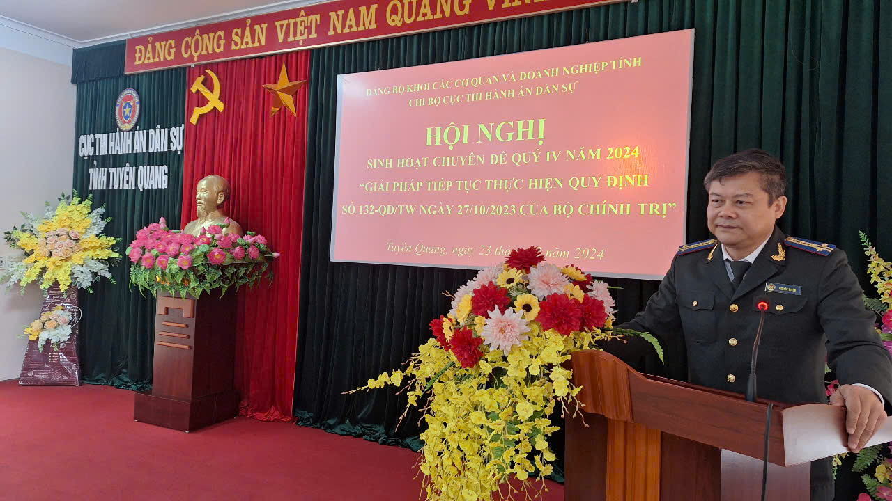 Kết luận buổi sinh hoạt chuyên đề, đồng chí Nguyễn Tuyên - Bí thư Chi bộ nhấn mạnh trong thời gian tới cần tiếp tục quán triệt, triển khai, lãnh đạo, chỉ đạo và tổ chức thực hiện đồng bộ, toàn diện nội dung Quy định số 132-QĐ/TW, kế hoạch của cấp trên về thực hiện Quy định số 132-QĐ/TW để đảng viên, công chức, người lao động, nhất là đội ngũ Chấp hành viên nâng cao nhận thức và thực hiện nghiêm các nguyên tắc, nội dung, phương thức, trách nhiệm của tập thể, cá nhân trong kiểm soát quyền lực, phòng chống tham nhũng, tiêu cực. Tăng cường kiểm tra, giám sát đối với các tập thể, cá nhân về trách nhiệm trong việc thực hiện Quy định số 132-QĐ/TW và nhiệm vụ, quyền hạn theo quy định của pháp luật; kịp thời phát hiện, xử lý hoặc đề xuất cấp có thẩm quyền xử lý nghiêm những tập thể, cá nhân có hành vi vi phạm, lợi dụng, lạm dụng chức vụ, quyền hạn, lạm quyền, tham nhũng, tiêu cực theo quy định.