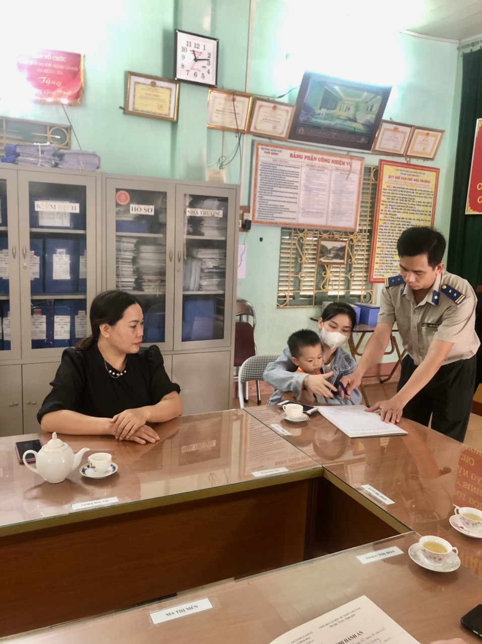 Nhận thấy vụ việc thi hành án này rất phức tạp, liên quan đến con người và quyền nhân thân, nếu tổ chức cưỡng chế thi hành sẽ gặp rất nhiều khó khăn, nguy cơ sảy ra rủi do rất cao, vụ việc thi hành án dẫn đến kéo dài, khó thi hành. Ngày 26/10/2023 Chấp hành viên đã báo cáo Lãnh đạo đơn vị cho ý kiến chỉ đạo, đồng thời phối hợp chặt chẽ với Ủy ban nhân dân xã Phú Bình, mời thành phần như: Đại diện lãnh đạo Ủy ban nhân dân xã, Đại diện Hội phụ nữ xã, Công chức Tư pháp - Hộ Tịch xã, Công an xã, Đại diện thôn Bản Ho, cùng tham gia và tổ chức đoàn làm việc đến gia đình ông Hà Thế H tuyên truyền, vận động, giải thích, thuyết phục ông H và gia đình tự nguyện thi hành án. Sau một thời gian làm việc, đoàn đã thuyết phục được ông H và gia đình tự nguyện giao cháu Hà Bảo L cho bà C trực tiếp nuôi dưỡng.