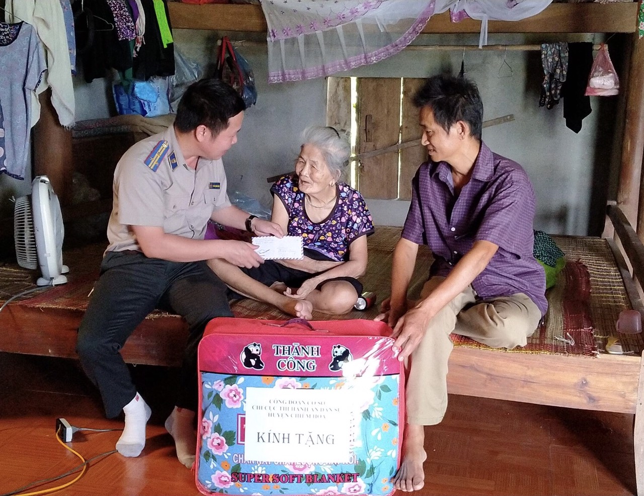 Thực hiện Kế hoạch số 168/KH-UBND ngày 15/6/2023 của Ủy ban nhân dân huyện Chiêm Hóa và Kế hoạch số 11/KH-BĐD ngày 05/7/2023 của Ban đại diện Hội người cao tuổi huyện Chiêm Hóa về triển khai thực hiện “Tháng hành động vì Người cao tuổi Việt Nam” năm 2023, Chi cục Thi hành án dân sự huyện phối hợp với Công đoàn Chi cục, Ủy ban nhân dân xã Trung Hà, tổ chức thăm hỏi, động viên và tặng quà cho người cao tuổi tại xã Trung Hà, huyện Chiêm Hoá.