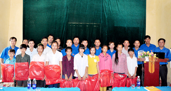 Các chi đoàn khối Đảng tặng quà cho các em học Trường Phổ thông Dân tộc bán trú THCS xã Yên Thuận