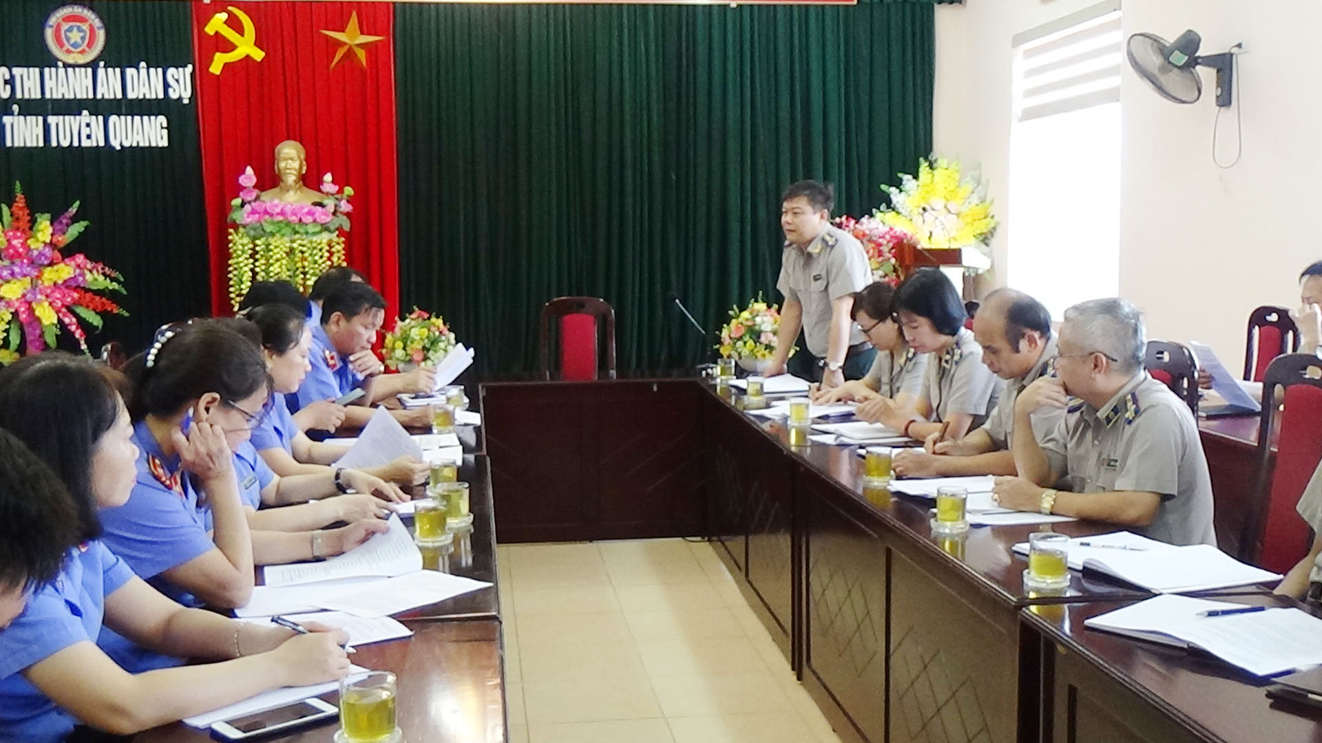 Thực hiện Kế hoạch số 1072/KH-VKS-P8 ngày 04/7/2022 và Quyết định số 1071/QĐ-VKS-P8 ngày 07/7/2022 của Viện Kiểm sát nhân dân tỉnh về trực tiếp kiểm sát hoạt động thi hành án dân sự, ngày 25/7/2022 đoàn kiểm sát của Viện Kiểm sát nhân dân tỉnh do đ/c Vũ Thanh Hải, Phó Viện trưởng làm Trưởng đoàn đã tổ chức công bố Quyết định kiểm sát công tác thi hành án dân sự tại Cục Thi hành án dân sự Tuyên Quang.