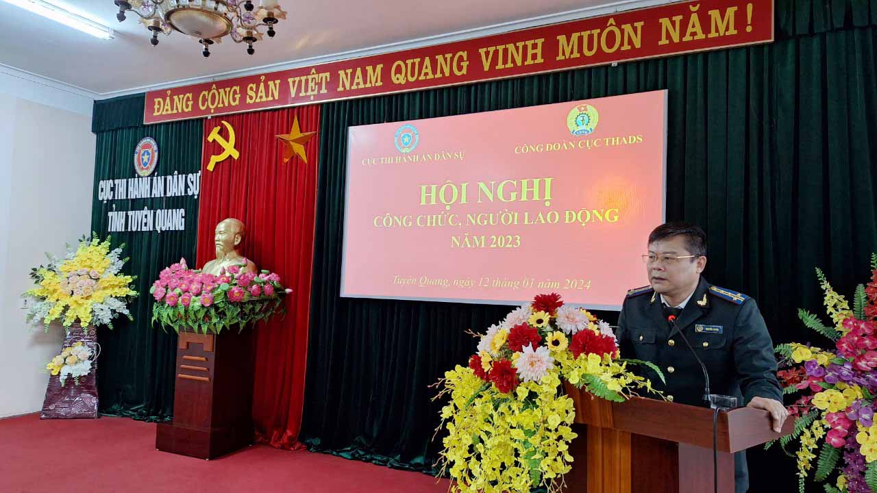 Thực hiện Quy chế thực hiện dân chủ trong hoạt động của Cục THADS; Kế hoạch số 67/KH-CTHADS ngày 21/12/2023 của Cục THADS và Công đoàn Cục THADS tỉnh Tuyên Quang, ngày 12/01/2024, Cục THADS và Công đoàn Cục THADS đã tổ chức Hội nghị công chức, người lao động năm 2023.
