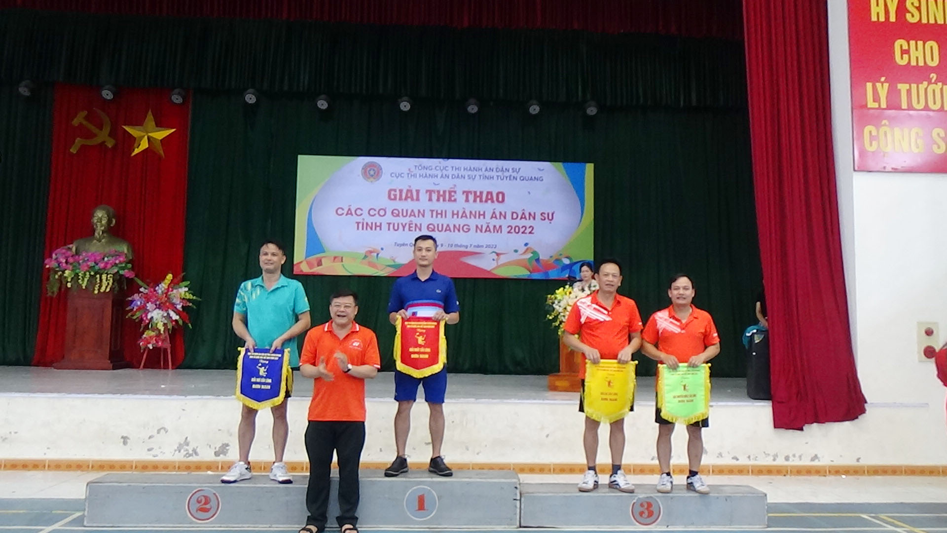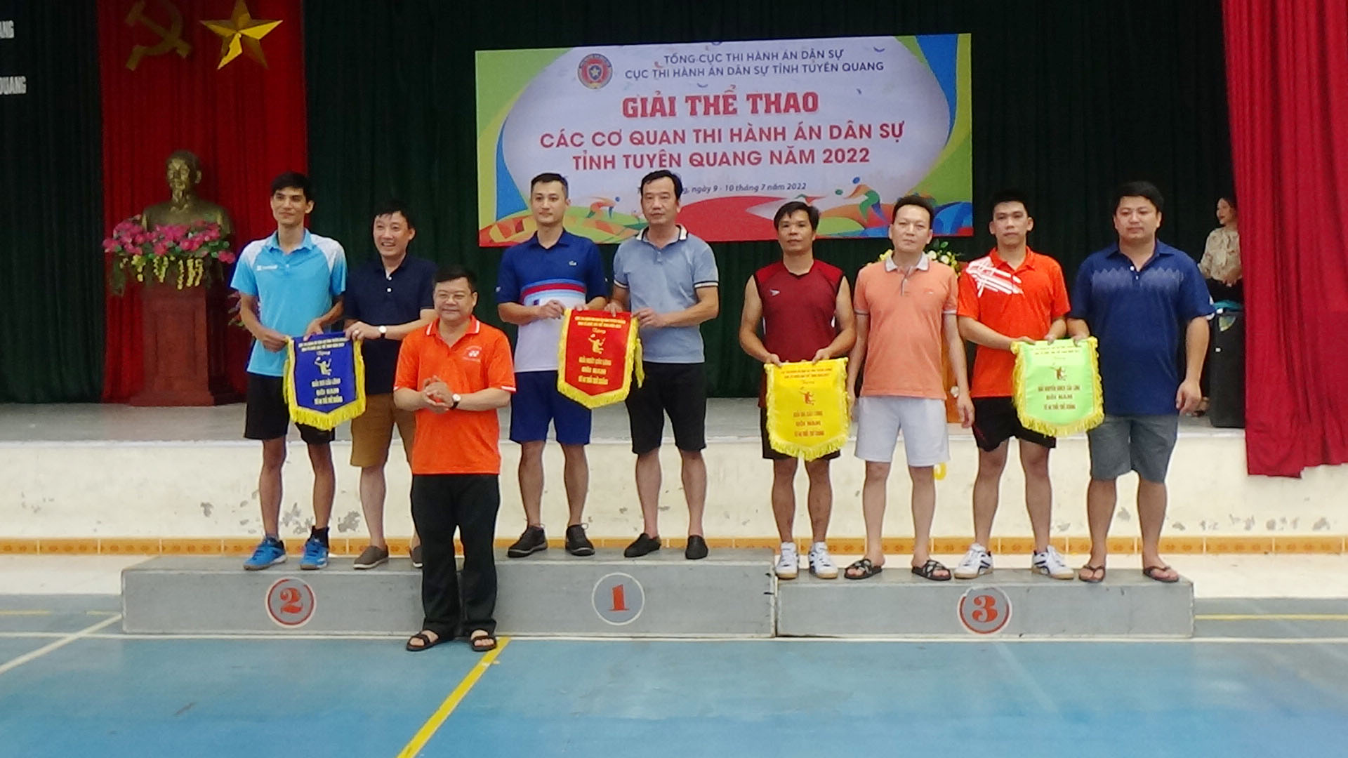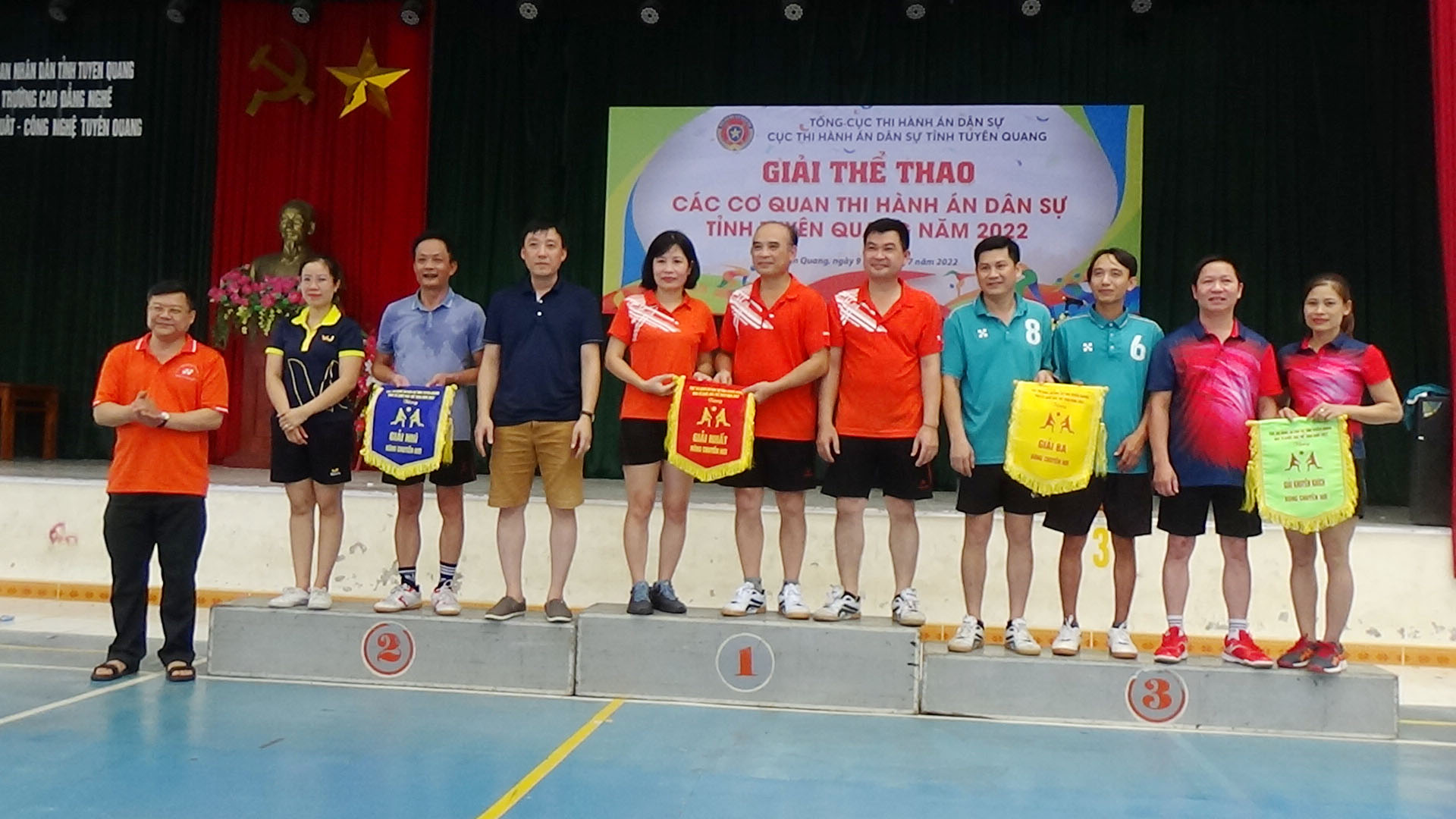 Thực hiện Kế hoạch tổ chức các hoạt động kỷ niệm 76 năm ngày Truyền thống Thi hành án dân sự, trong 1,5 ngày (ngày 09 và sáng ngày 10/7/2022) tại Nhà thi đấu Trường cao đẳng nghề Kỹ thuật – Công nghệ Tuyên Quang , Cục Thi hành án dân sự tỉnh Tuyên Quang đã tổ chức Giải thể thao các cơ quan Thi hành án dân sự năm 2022.