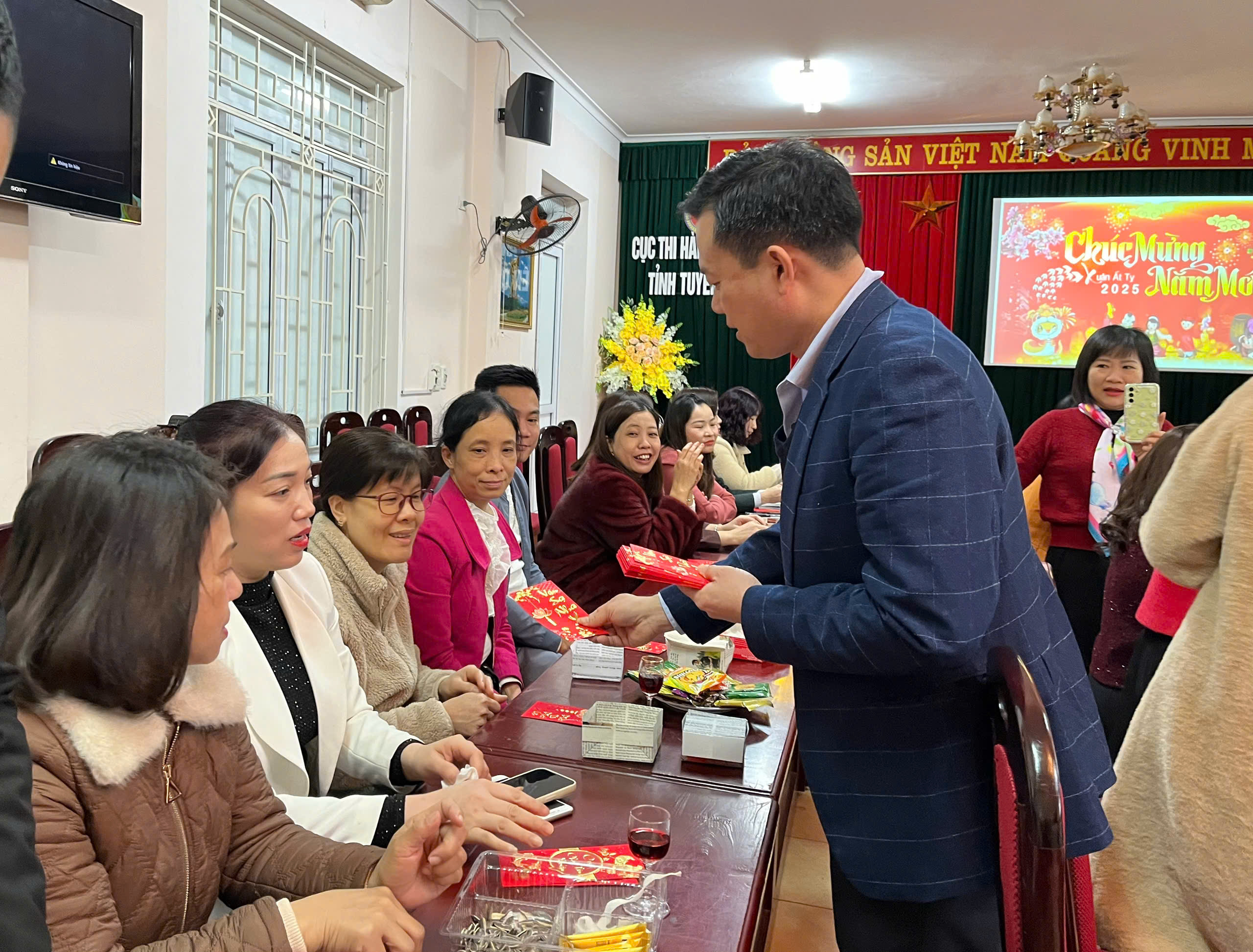 Sau lời phát biểu chúc tết đầu xuân và nhận lì xì của Đ/c Cục trưởng và các đ/c Phó Cục trưởng, các đồng chí lãnh đạo và cán bộ, công chức,người lao động trong cơ quan đã cùng chúc mừng năm mới, đây cũng là dịp mọi người gửi cho nhau những lời chúc tốt đẹp nhất để sẵn sàng bước vào công việc một cách tự tin, chủ động và đạt hiệu quả cao trong năm 2025.