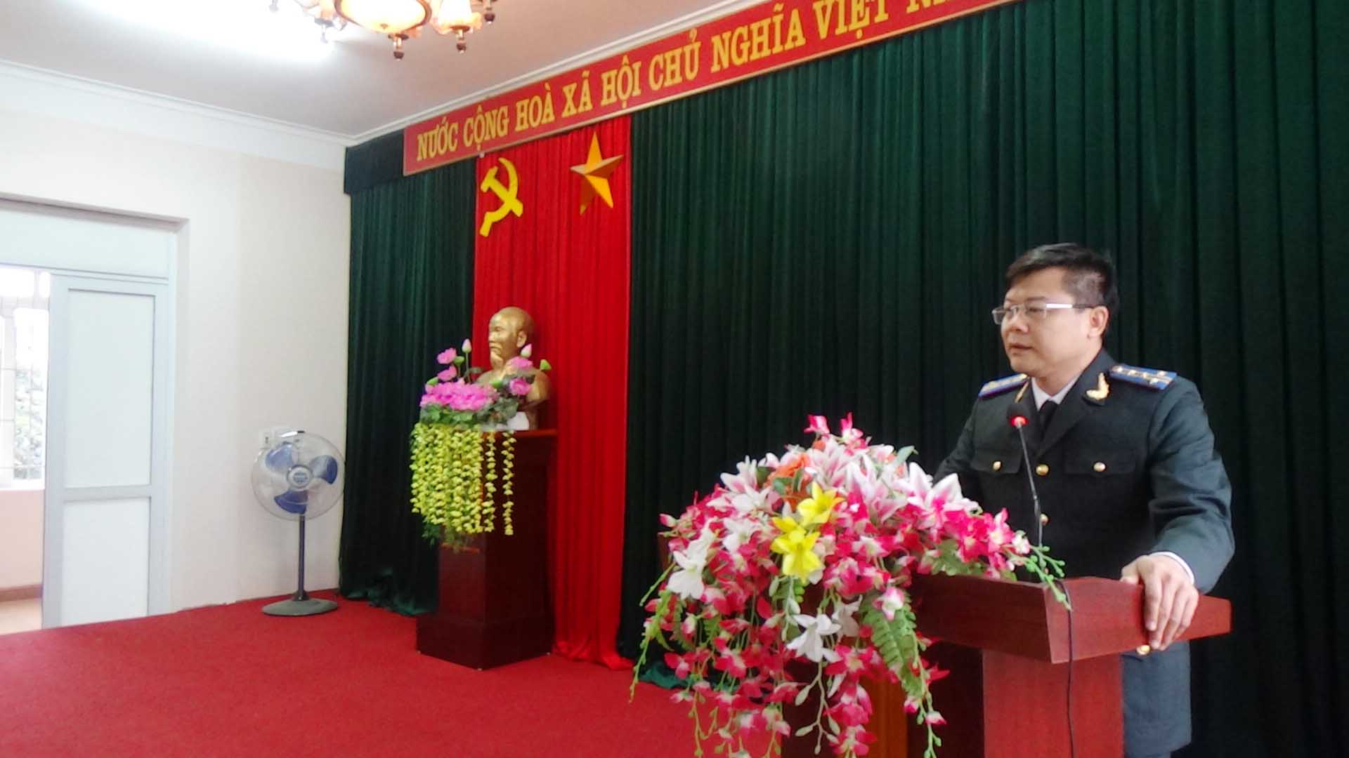 Đ/c Đỗ Tiến Thùy, Phó Giám đốc Công an tỉnh Tuyên Quang phát biểu chúc mừng.