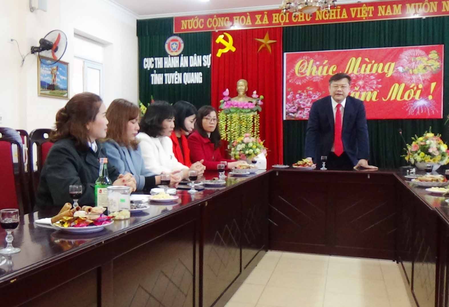 Trong không khí đầm ấm của buổi gặp mặt đầu xuân, Đ/c Cục trưởng đã biểu dương những nỗ lực, cố gắng của toàn thể công chức, người lao động của Cục trong năm vừa qua, đồng thời khẳng định, công tác thi hành án dân sự đã tiếp tục đạt được những kết quả nhất định, được Đảng, Nhà nước ghi nhận. Bước vào mùa xuân mới - Xuân Nhâm Dần 2022, trong điều kiện công tác thi hành án dân sự còn gặp nhiều khó khăn, thách thức khi số lượng việc, tiền thụ lý ngày càng tăng trong khi tình hình dịch bệnh COVID-19 vẫn còn diễn biến phức tạp, do vậy đồng chí đề nghị toàn thể công chức, người lao động của Cục cần phải tiếp tục duy trì sự đoàn kết, thống nhất, phát huy năng lực, sở trường của mỗi cá nhân, thực hiện nghiêm kỷ cương hành chính, kỷ luật lao động, nêu cao tinh thần trách nhiệm để tạo sức mạnh tổng hợp, triển khai thực hiện ngay các nhiệm vụ theo Chương trình công tác của Bộ Tư pháp trong lĩnh vực thi hành án dân sự; Kế hoạch công tác năm 2022 của Cục và của từng phòng chuyên môn, đảm bảo tiến độ, chất lượng và hiệu quả cao, phấn đấu hoàn thành xuất sắc các chỉ tiêu, nhiệm vụ mà Bộ Tư pháp, Tổng cục Thi hành án dân sự giao.
