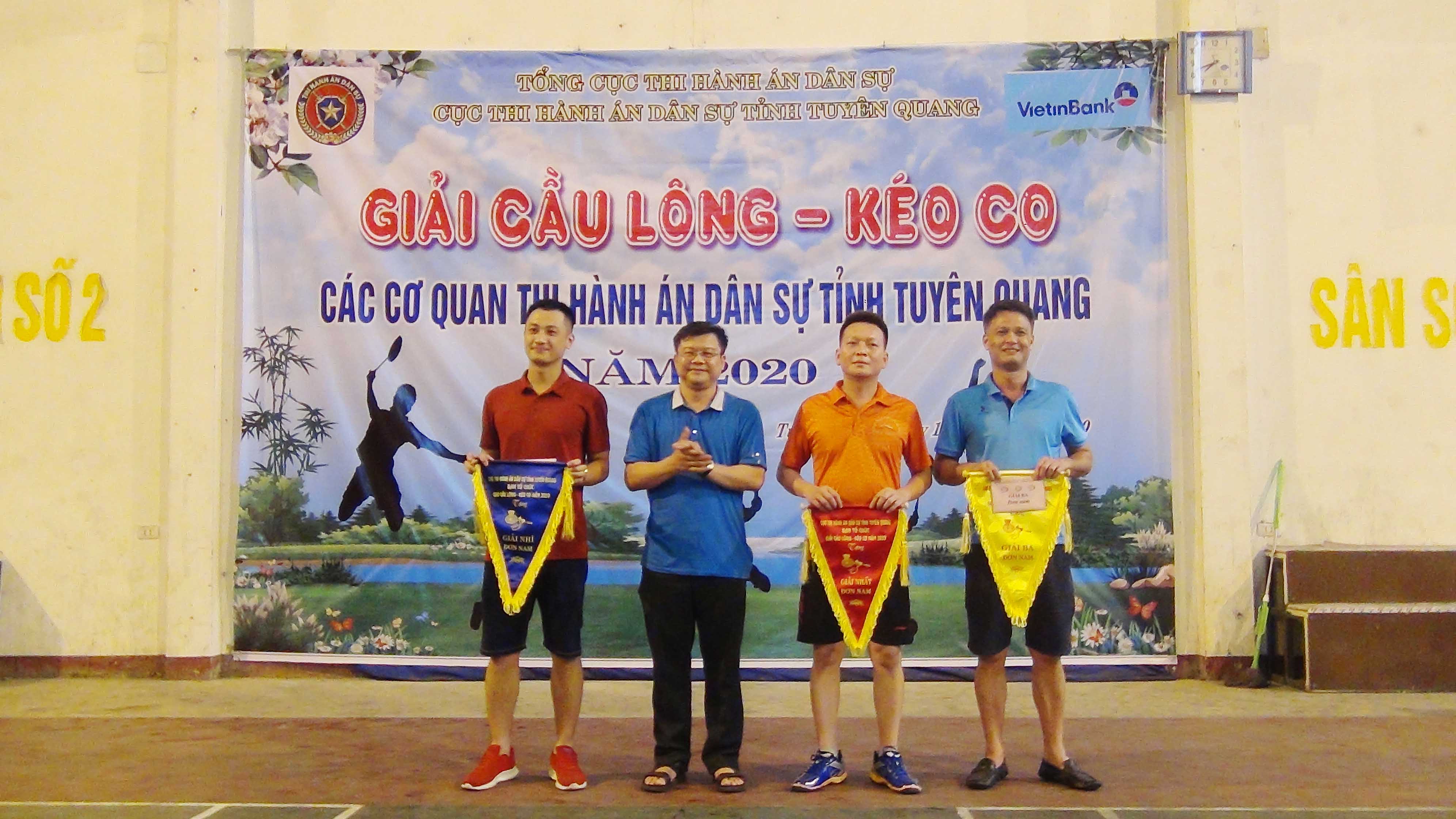 Kết thúc, Ban tổ chức đã trao các giải nhất, nhì, ba cho các nội dung thi đấu, cụ thể: Với nội dung môn kéo co, giải nhất thuộc về đội của Chi Cục Thi hành án dân sự huyện Hàm Yên; giải nhì thuộc về đội Chi cục Thi hành án dân sự huyện Yên Sơn; giải ba thuộc về đội Chi cục Thi hành án dân sự huyện Chiêm Hóa. Về môn cầu lông, giải nhất đôi nam trên 41 tuổi là đôi vận động viên Trần Kim Sơn - Hoàng Quang Hà của Cục THADS tỉnh; giải nhất đôi nam dưới 41 tuổi là đôi vận động viên Nguyễn Quang Huy - Hứa Đức Việt của Chi cục THADS huyện Yên Sơn; giải nhất đôi nam nữ phối hợp là đôi vận động viên Hà Duy Hiển - Nguyễn Thị Dương Hồng của Chi cục THADS huyện Sơn Dương; giải nhất đơn nam thuộc về vận động viên Nguyễn Quang Huy của Chi cục THADS huyện Yên Sơn.