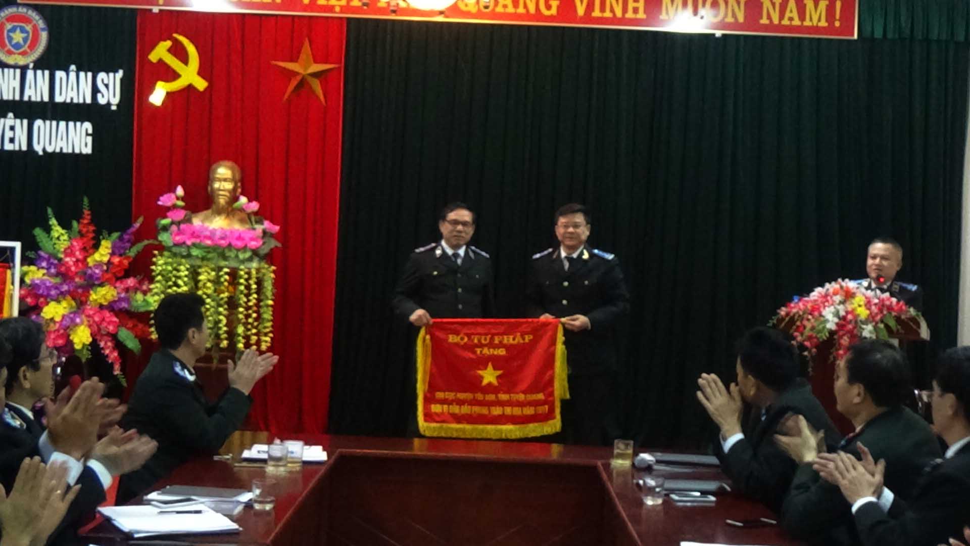 Đ/c Nguyễn Tuyên, Cục trưởng tặng Cờ thi đua của Bộ Tư pháp cho Chi cục THADS huyện Yên Sơn