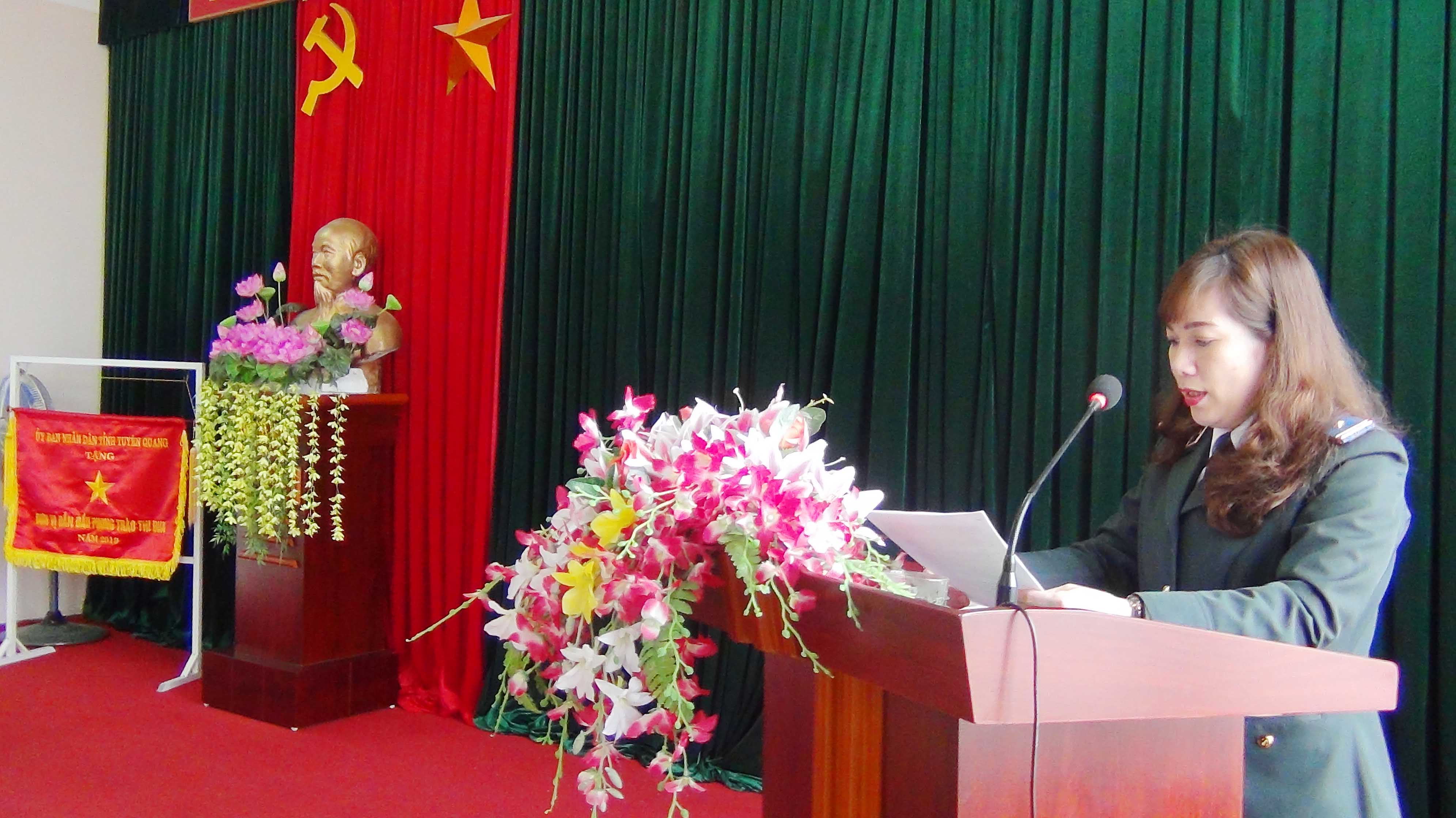 Thay mặt Ban Tổ chức, đồng chí Trịnh Thị Nam, Phó Trưởng phòng Tổ chức cán bộ đã triển khai những nội dung của Kế hoạch phát động phong trào thi đua năm 2020 với chủ đề ““Các cơ quan Thi hành án dân sự tỉnh Tuyên Quang đoàn kết, kỷ cương, trách nhiệm, thi đua bứt phá hiệu quả, về đích sớm lập thành tích xuất sắc chào mừng kỷ niệm 74 năm ngày truyền thống Thi hành án dân sự (19/7/1946-19/7/2020); 75 năm ngày truyền thống Ngành Tư pháp (28/8/1945-28/8/2020) và Đại hội Thi đua yêu nước lần thứ V” và nội dung giao ước thi đua giữa các đơn vị.