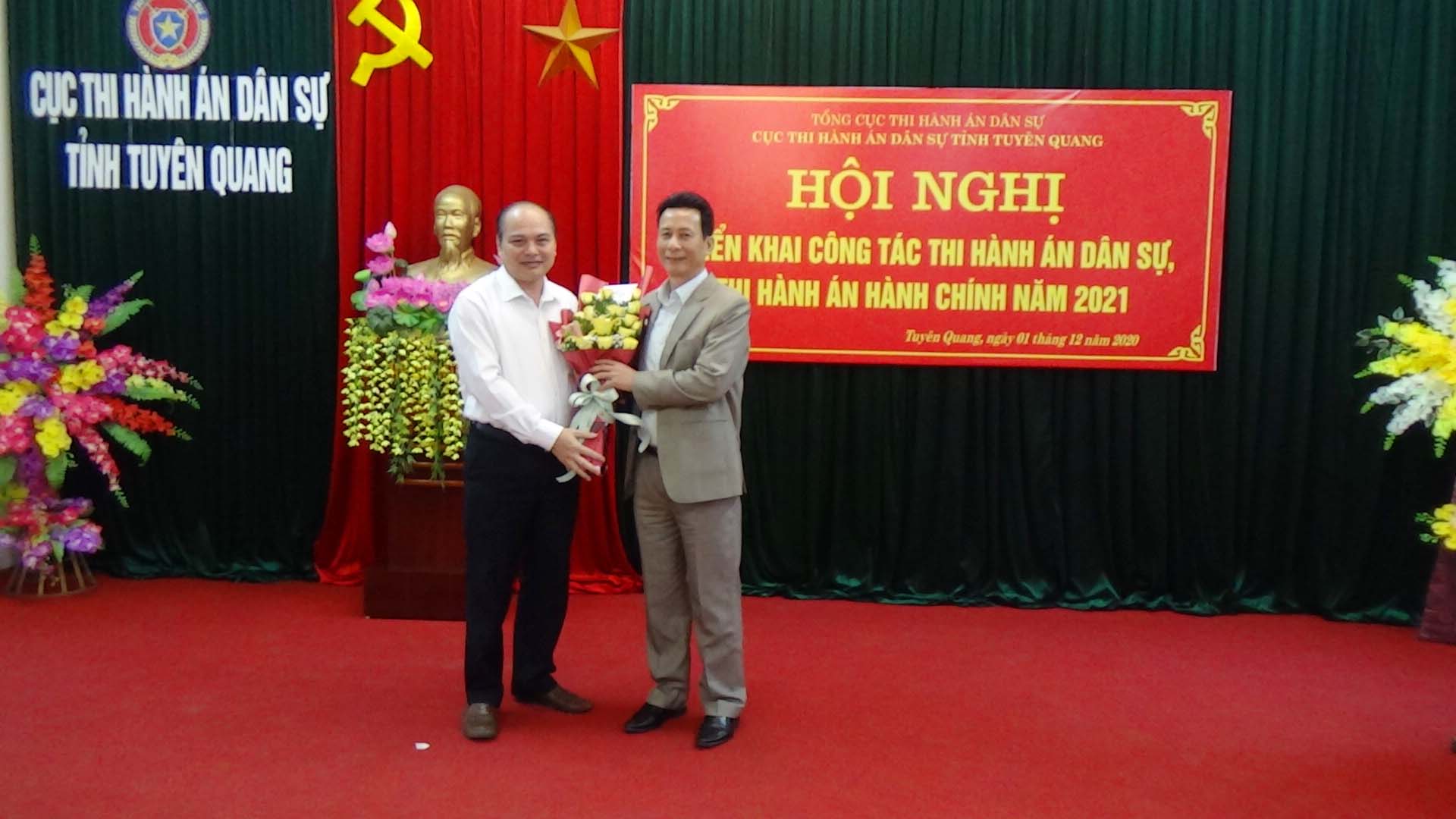 Phát biểu chỉ đạo tại Hội nghị, đồng chí Nguyễn Quang Thái, Tổng cục trưởng Tổng cục Thi hành án dân sự, Bộ Tư pháp đã biểu dương và đánh giá cao những thành tích Cục Thi hành án dân sự tỉnh đạt được trong năm 2020. Đồng chí cho rằng điểm sáng của Tuyên Quang trong công tác thi hành án dân sự năm 2020 là không phát sinh nhiều khiếu nại, tố cáo. Kết quả này có được bởi đơn vị đã chú trọng công tác tuyên truyền, vận động, làm tốt công tác tiếp công dân, quan tâm xây dựng đội ngũ cán bộ đáp ứng yêu cầu nhiệm vụ. Đồng chí Tổng cục trưởng đề nghị thời gian tới, Cục Thi hành án dân sự tỉnh cần tập trung vào cải cách thủ tục hành chính, ứng dụng công nghệ thông tin trong công tác. Tiếp tục quan tâm làm tốt hơn nữa công tác xây dựng đội ngũ cán bộ, chủ động và trách nhiệm trong việc triển khai thực hiện nhiệm vụ năm 2021, thực hiện thắng lợi Chương trình trọng tâm trong lĩnh vực THADS, THAHC của Bộ Tư pháp, chỉ đạo của Tổng cục và các nhiệm vụ, giải pháp mà Cục đã đề ra, chủ động phối hợp với các cơ quan có liên quan, với cấp ủy, chính quyền địa phương nhằm thi hành án có hiệu quả. Tiếp tục đổi mới công tác tuyên truyền, xây dựng hình ảnh người công chức thi hành án tận tình, trách nhiệm; chấn chỉnh các tồn tại, hạn chế; giải quyết các việc thi hành án đúng quy định của pháp luật; đồng thời tổ chức tốt các hoạt động hướng tới kỷ niệm 75 năm Ngày truyền thống Thi hành án dân sự (19/7/1946 - 19/7/2021)