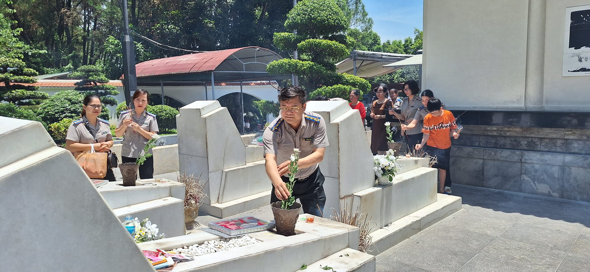 Đ/c Cục trưởng thắp hương tại các phần mộ của 10 nữ Thanh niên xung phong Ngã ba Đồng Lộc.