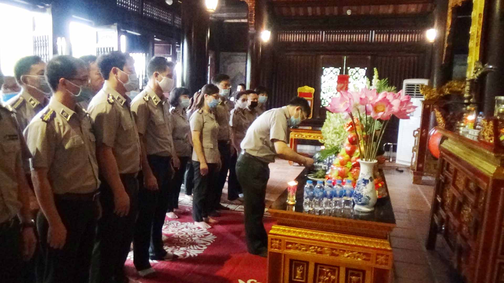 Lãnh đạo Cục, lãnh đạo các Chi cục, công chức Cục Thi hành án dân sự tỉnh Tuyên Quang dâng hương, báo công tại đền thờ Bác.
